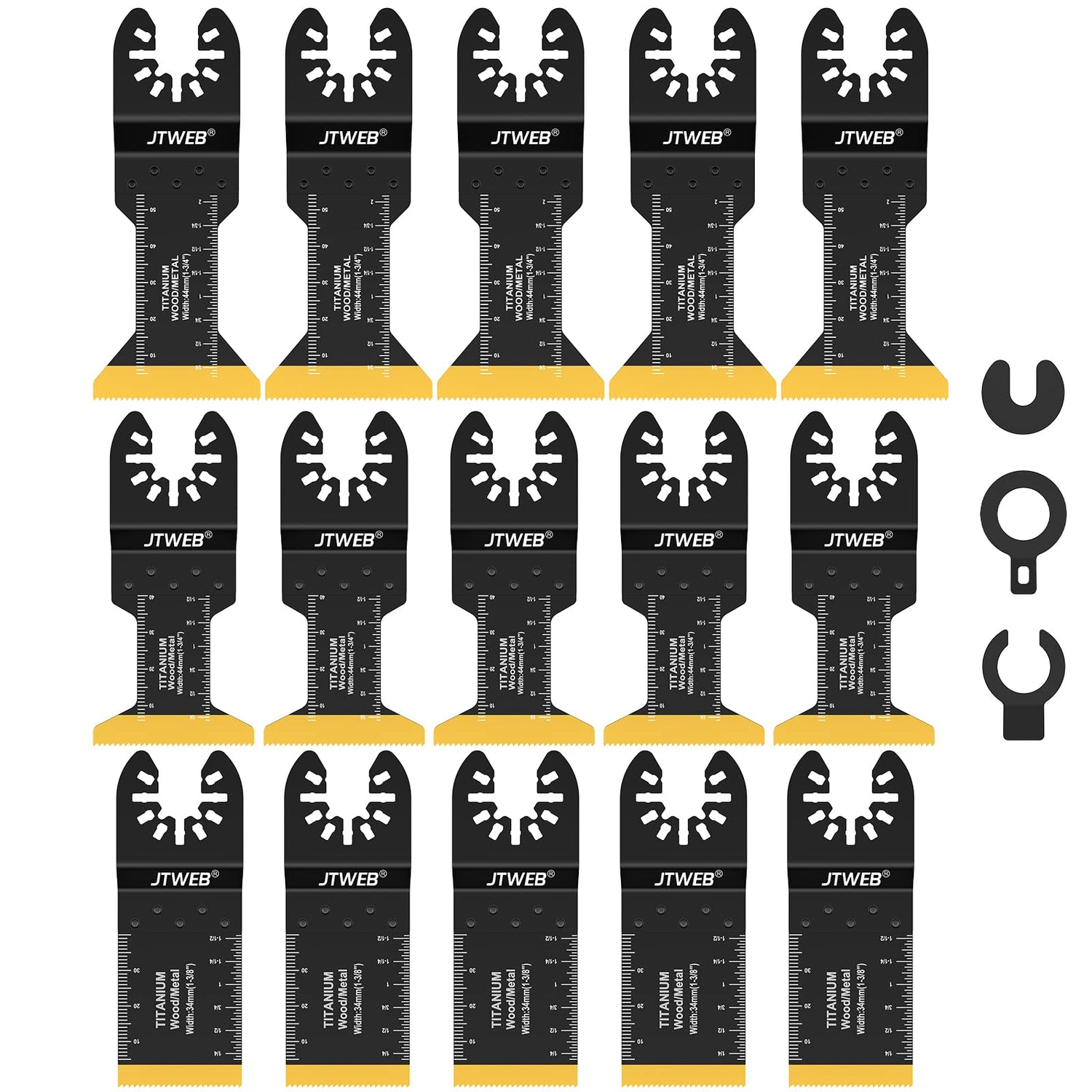 JTWEB 15PCS Titanium Oscillating Saw Blades, Multitool Blades Oscillating Tool Blade Metal Cutting for Wood Nails, Screws, Plastic, Multi Tool Blades Kits for Dewalt Milwaukee Bosch Ryobi