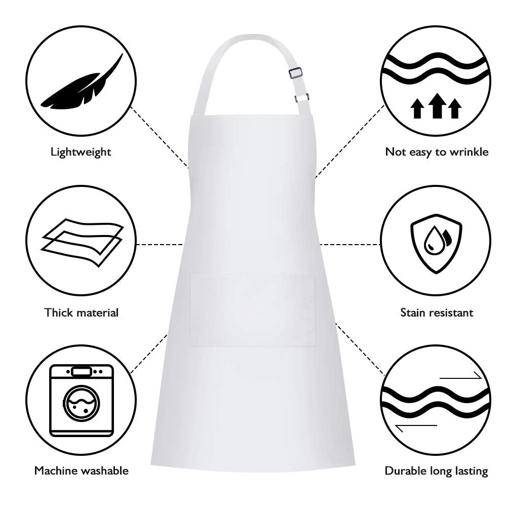 Jubatus 2 Pack Bib Aprons with 2 Pockets Cooking Chef Kitchen Apron for Women Men, White