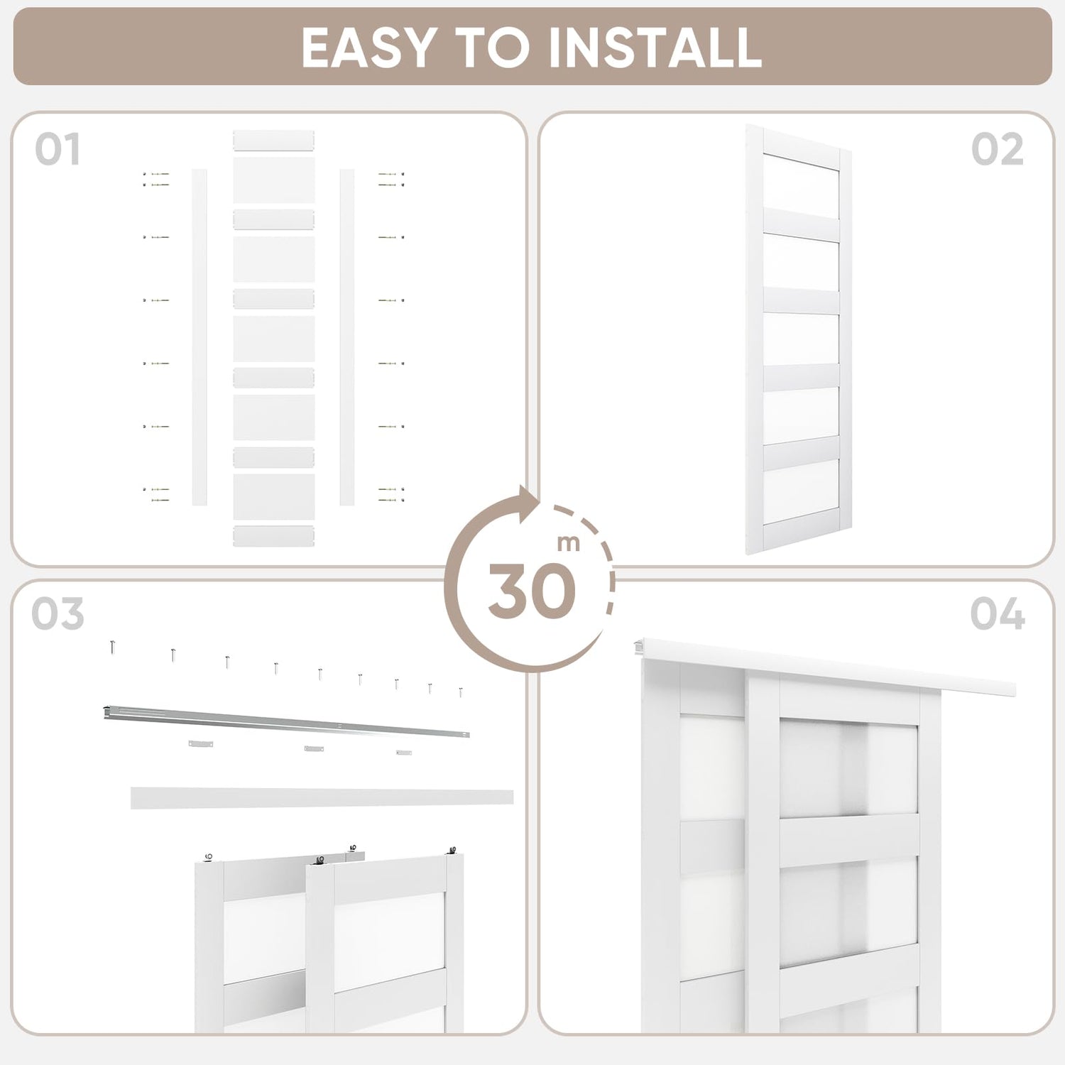 - Solid and Durable: JUBEST glass sliding closet door is made of prefinished solid wood construction with vinyl wrapped MDF surface which is highly durable, easy to clean, and scratch-resistant; The frosted glass secures privacy while offering natural light. All doors have passed through 100,000 opening and closing tests.