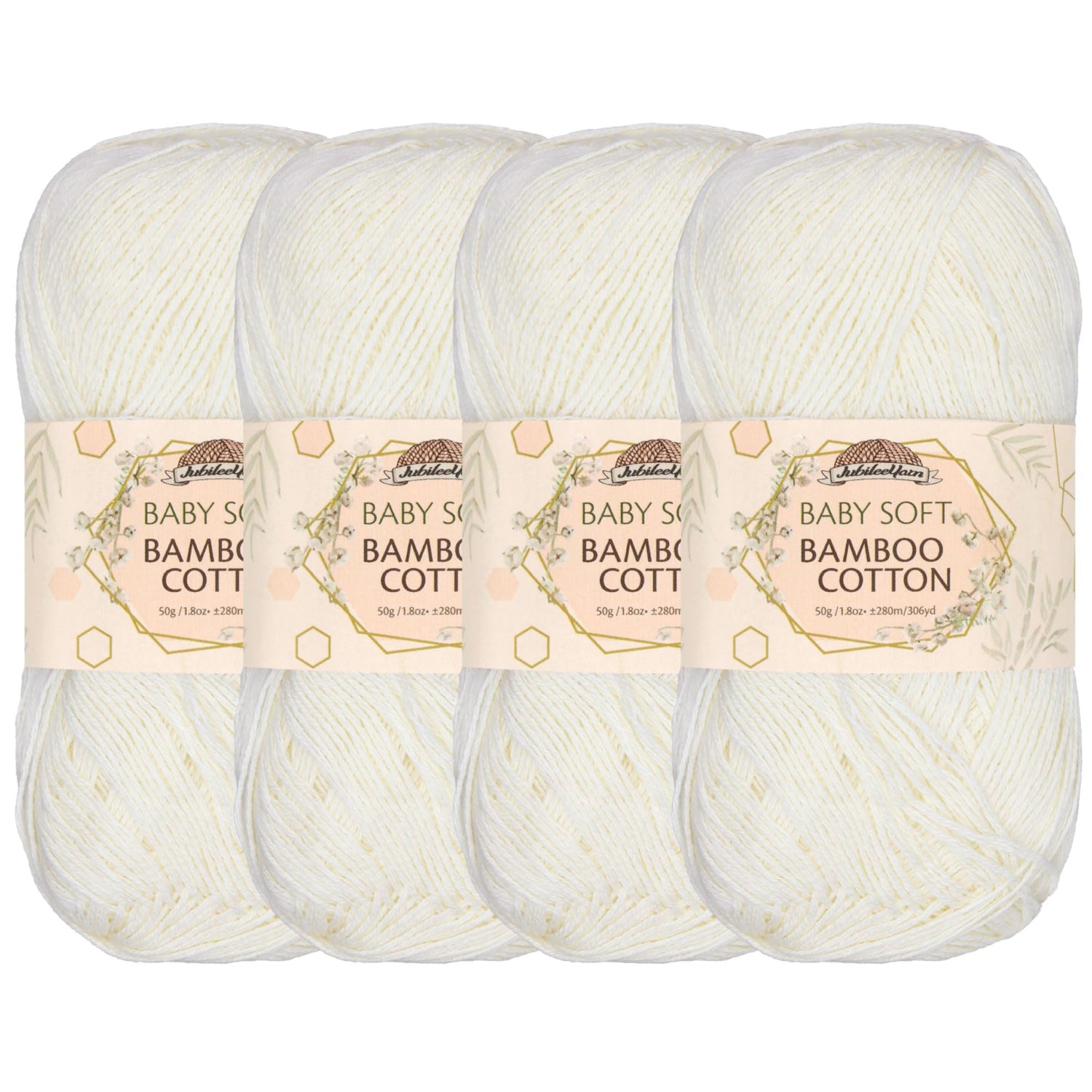 JubileeYarn Baby Soft Bamboo Cotton Yarn - 50g/Skein - Almond Milk - 4 Skeins