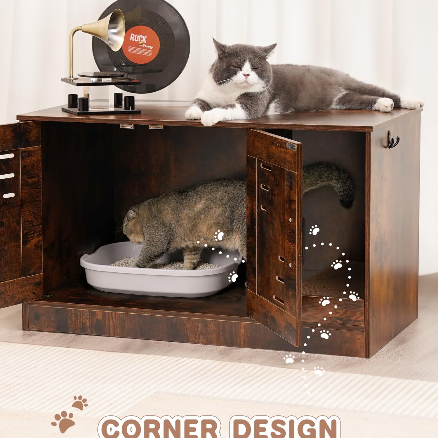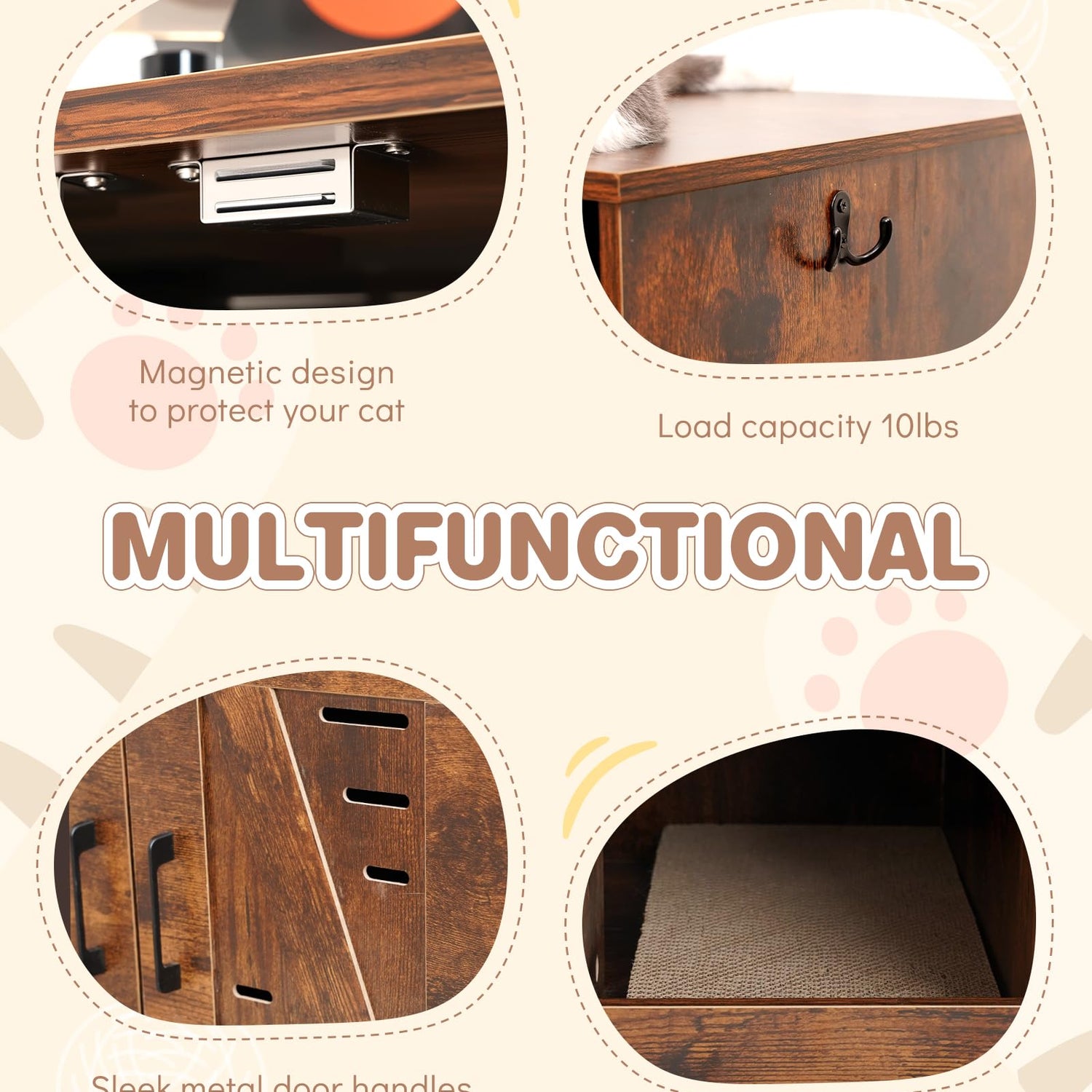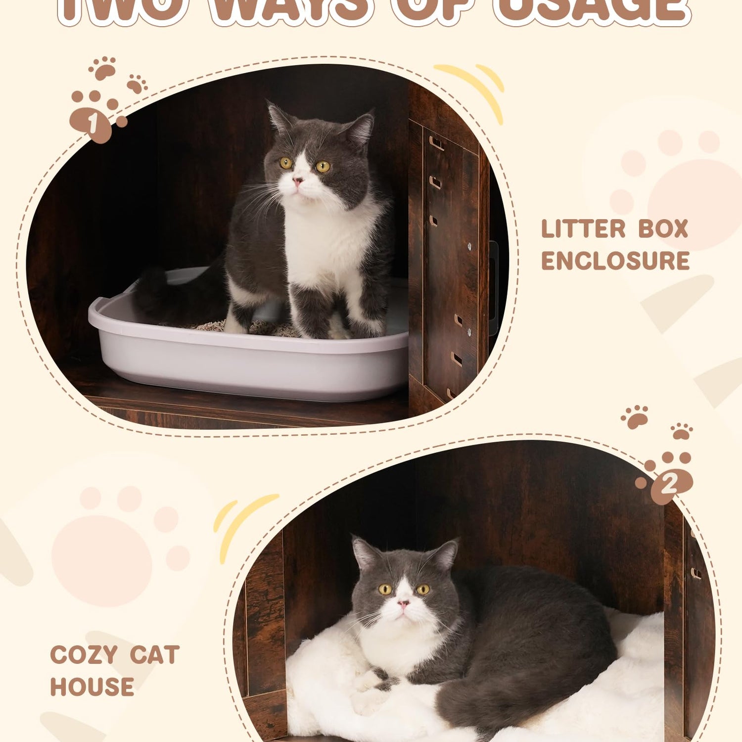 - SPACIOUS & SECURE INTERIOR - IDEAL FOR CAT COMFORT: Give your feline friend a private space with a roomy, ventilated interior. Cat litter box enclosure also serves as a cozy sleeping area, providing your cat with stress-free sleeping den for more comfortable and lazy enjoyment of it private space.