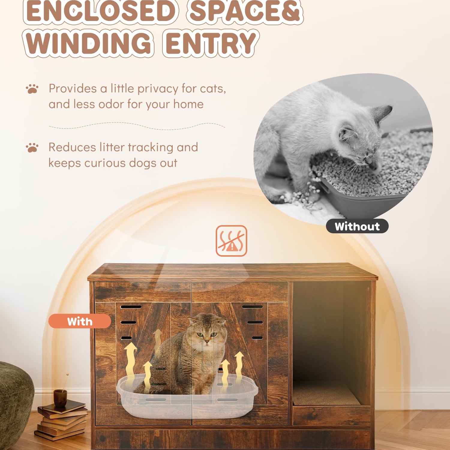- STYLISH CAT HOUSE DESIGN: Our cat litter box enclosure not only hides your cat litter box but also doubles as a chic furniture piece that blends with any décor. Unlike standard litter boxes, our enclosure reduces odors, keeping your home fresh without compromising style. High threshold design designed to prevent litter tracking, so you spend less time cleaning and more time enjoying your space.