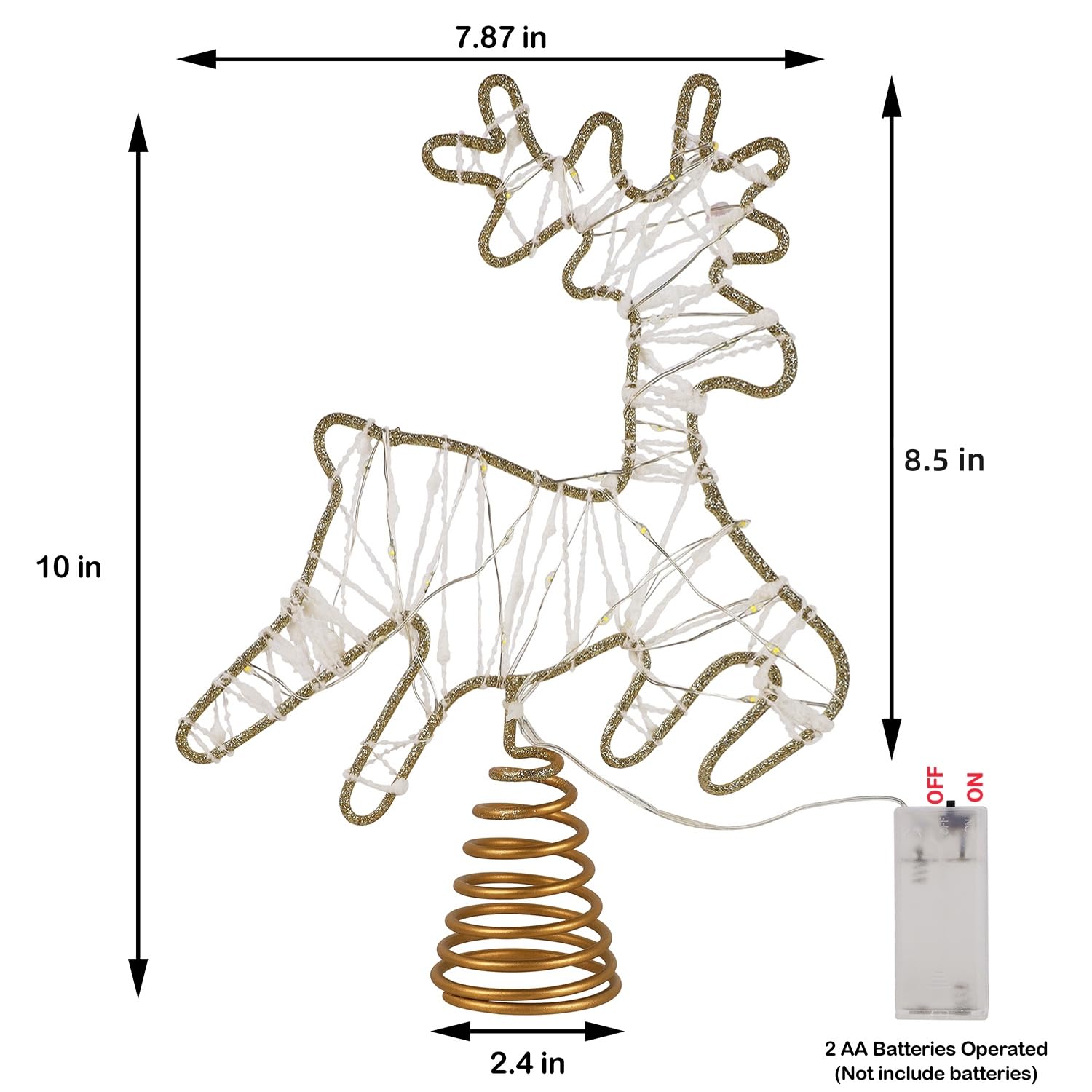 Details: Juegoal Lighted Reindeer Christmas Tree Topper, Metal Xmas Glitter Elk Treetop Ornaments with 30 LED Warm White Lights