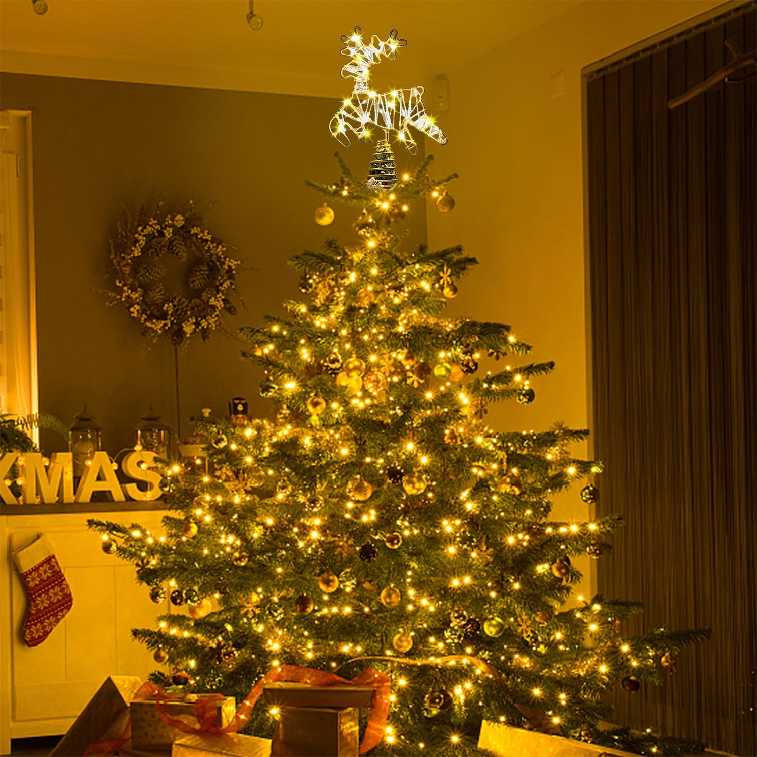 - Christmas Tree Topper: Crown your Christmas tree with this impressive golden reindeer tree topper. It outlined by 30 LED warm white glowing lights, the reindeer offers a bright and warm illumination that enhances the festive feel of your decor