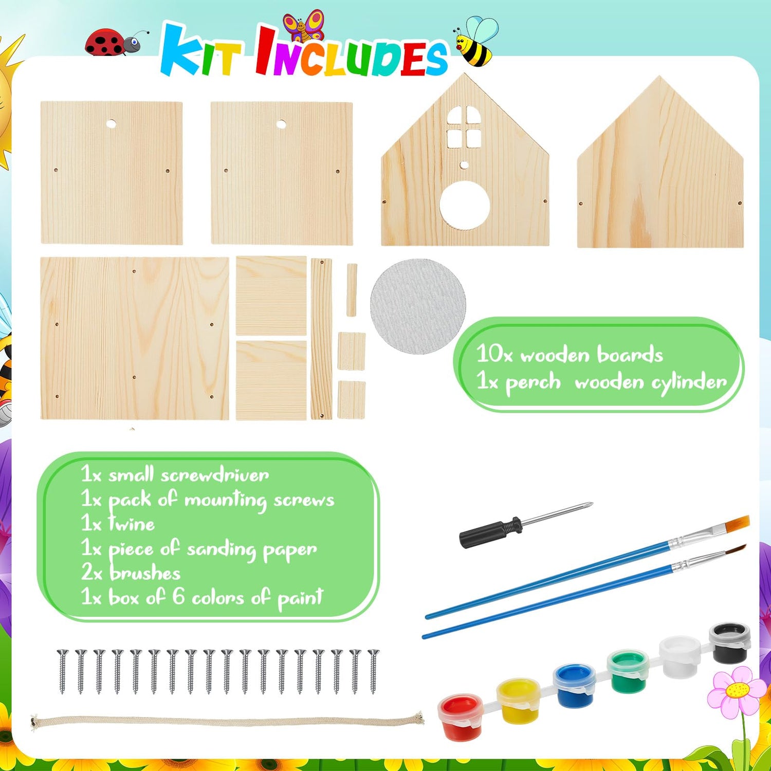- Complete Birdhouse Kit: our 2 Pack DIY wooden birdhouse kits come with all the necessary parts and pieces; Includes the necessary wooden boards, screwdrivers, screws for installation, and comes with paint for easy DIY design after assembly; No need for extra tools or items we've thought about everything