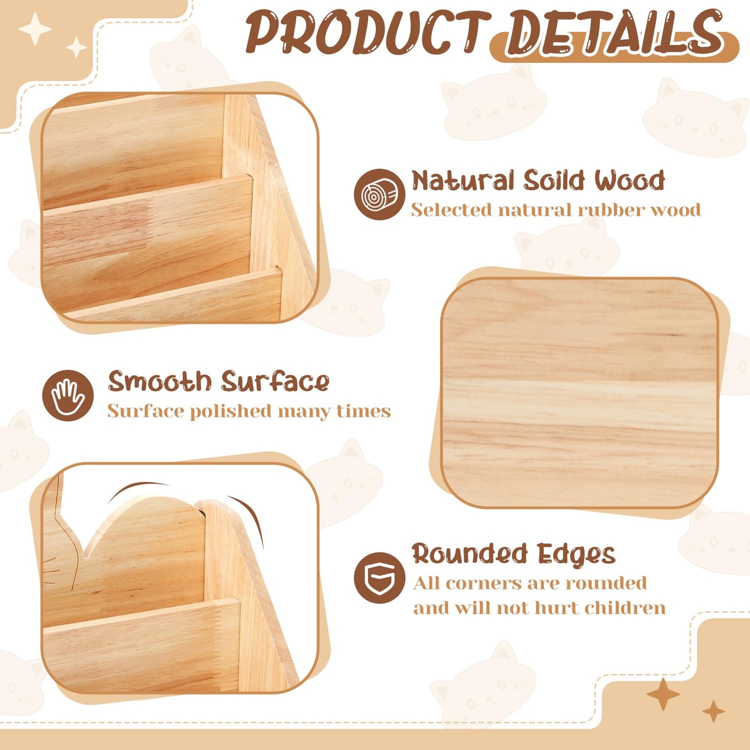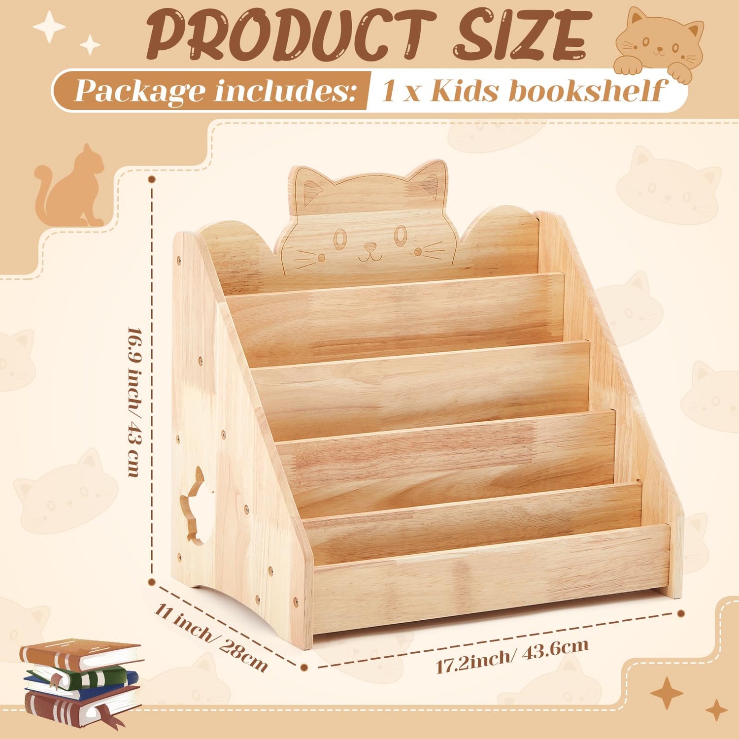 - Childhood Novelty and Creativity Honed: our kids wooden bookshelf boasts a distinctive cat style and is equipped with a functional blackboard; Kids can indulge in their creative fantasies on the blackboard while reading; Made of quality rubber wood, the surface and edges have been polished multiple times and coated with child friendly water based paint, making them smooth and round, ideal for kid's bedroom, classroom, or nursery