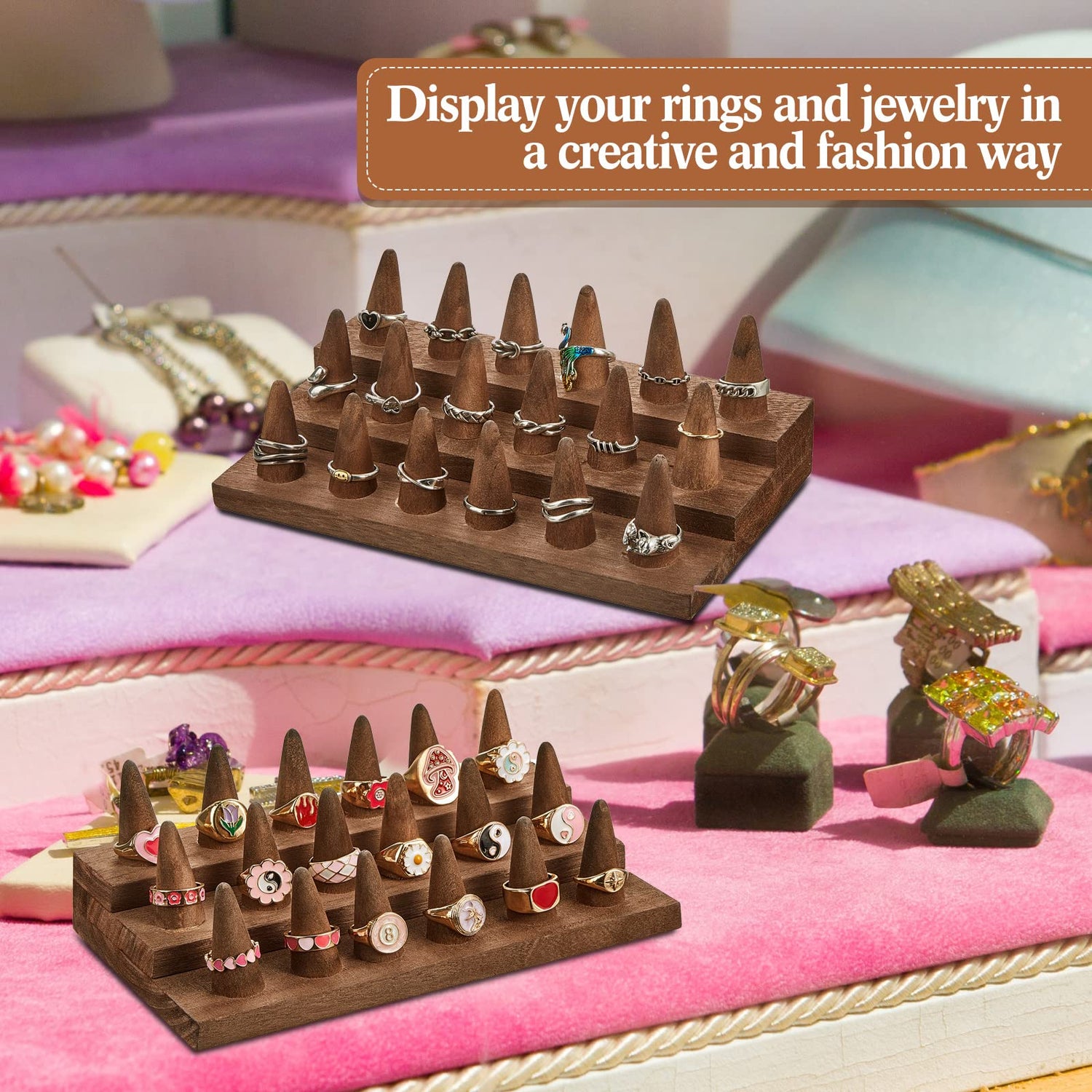 - Reliable Material: ring display stand is mainly made of quality wood, sturdy and solid, not easy to deform, fade or break, with smooth surfaces and no burrs, ideal for long term use