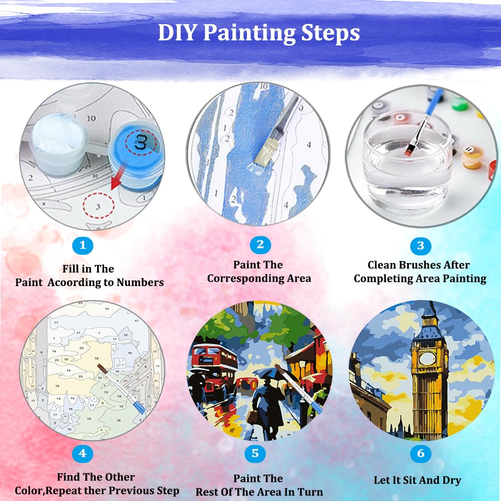 - 【Easy to Paint】Painting by numbers kits is suitable for all skills levels adults beginner. You only match the numbers of the paint and the figures on canvas to fill in the paint. Finish the painting one by one