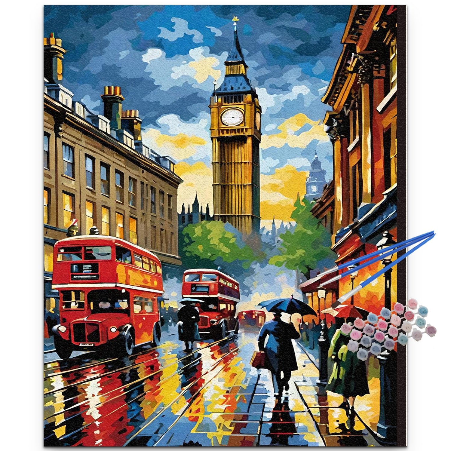 JUJUHOOD Big Ben Paint by Numbers Kit for Adults,London City Street Adult Paint by Number Kits,DIY Acrylic Paint by Number on Canvas for Home Wall Decor 16X20 Inch