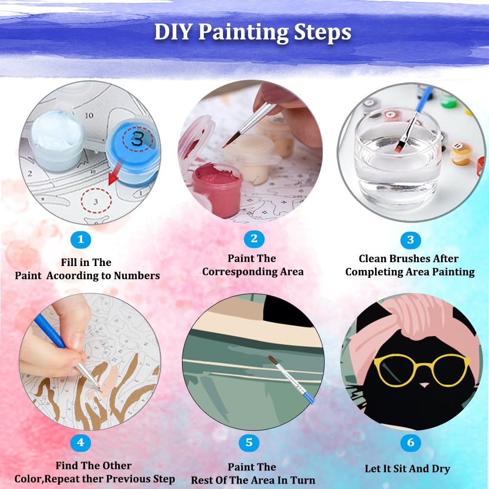 - 【Fun & Relaxing for All Ages & Skill Levels】 Enjoyable for kids, teens, adults, and seniors – A fantastic family or solo activity,You only match the numbers of the paint and the figures on canvas to fill in the paint. Finish the painting one by one.