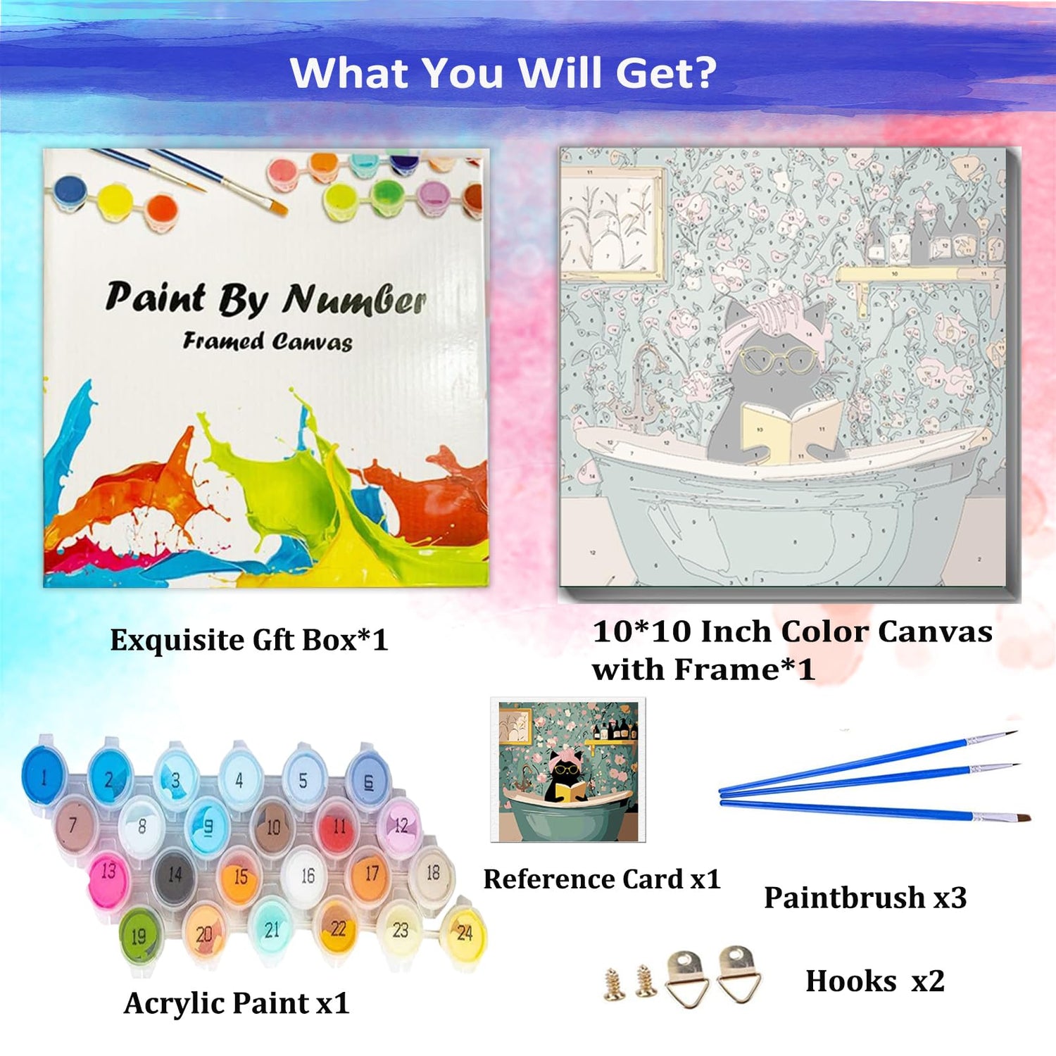 - 【All-Inclusive Beginner’s Kit – Everything Included】1 exquisite gift box,1 pre-printed 10"x10"framed canvas, 3 paintbrushes (varied sizes), acrylic paints, 2 sets of hooks, and a numbered guide. Perfect for adults and beginners!