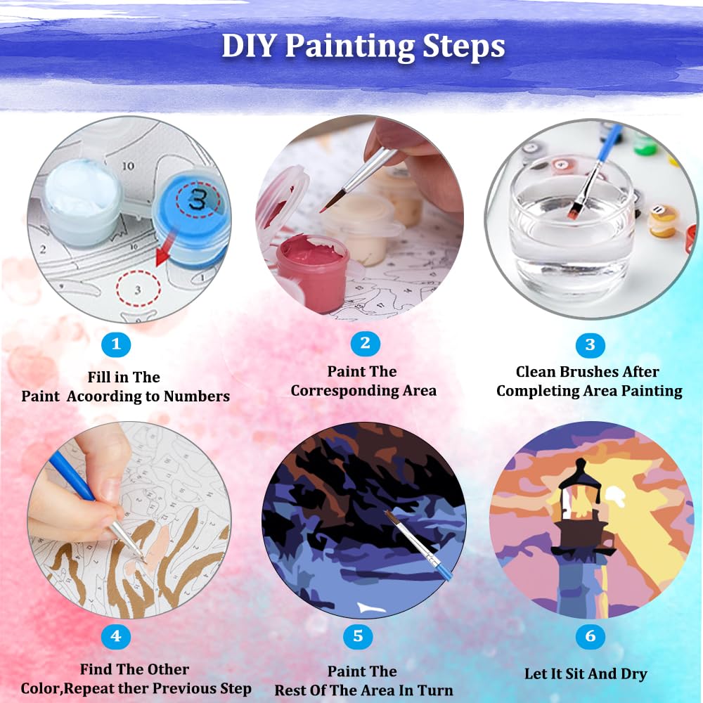 - 【Fun & Relaxing for All Ages & Skill Levels】 Enjoyable for kids, teens, adults, and seniors – A fantastic family or solo activity,You only match the numbers of the paint and the figures on canvas to fill in the paint. Finish the painting one by one.