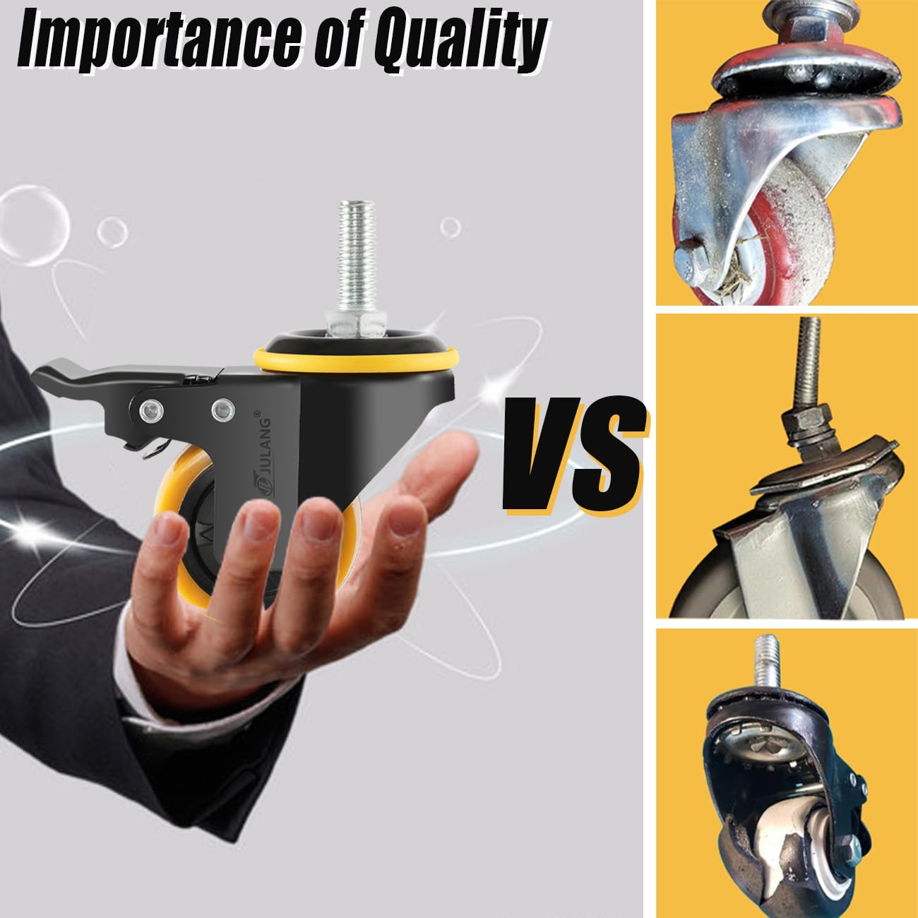 JULANG 2 inch Locking Caster Wheels,3/8'' Stem Castors (3/8" -16 x 1),Threaded Stem Casters,Swivel Casters Set of 4 Heavy Duty for Furniture,Carts,Clothes Racks,Cafeteria Mobile Shelves.
