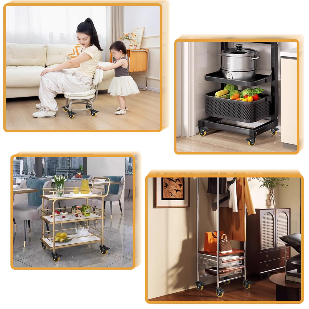 - 【Stable construction】The caster wheels for furniture brackets are rolled from heavy-duty steel and thickened to 2.1 mm to withstand high loads up to 580 lbs. on 4 wheels (actual test). The top locking brake applies positive locking force to the top of the wheels, locking both the wheels and swivels, holding the unit securely in place and reducing accidents.