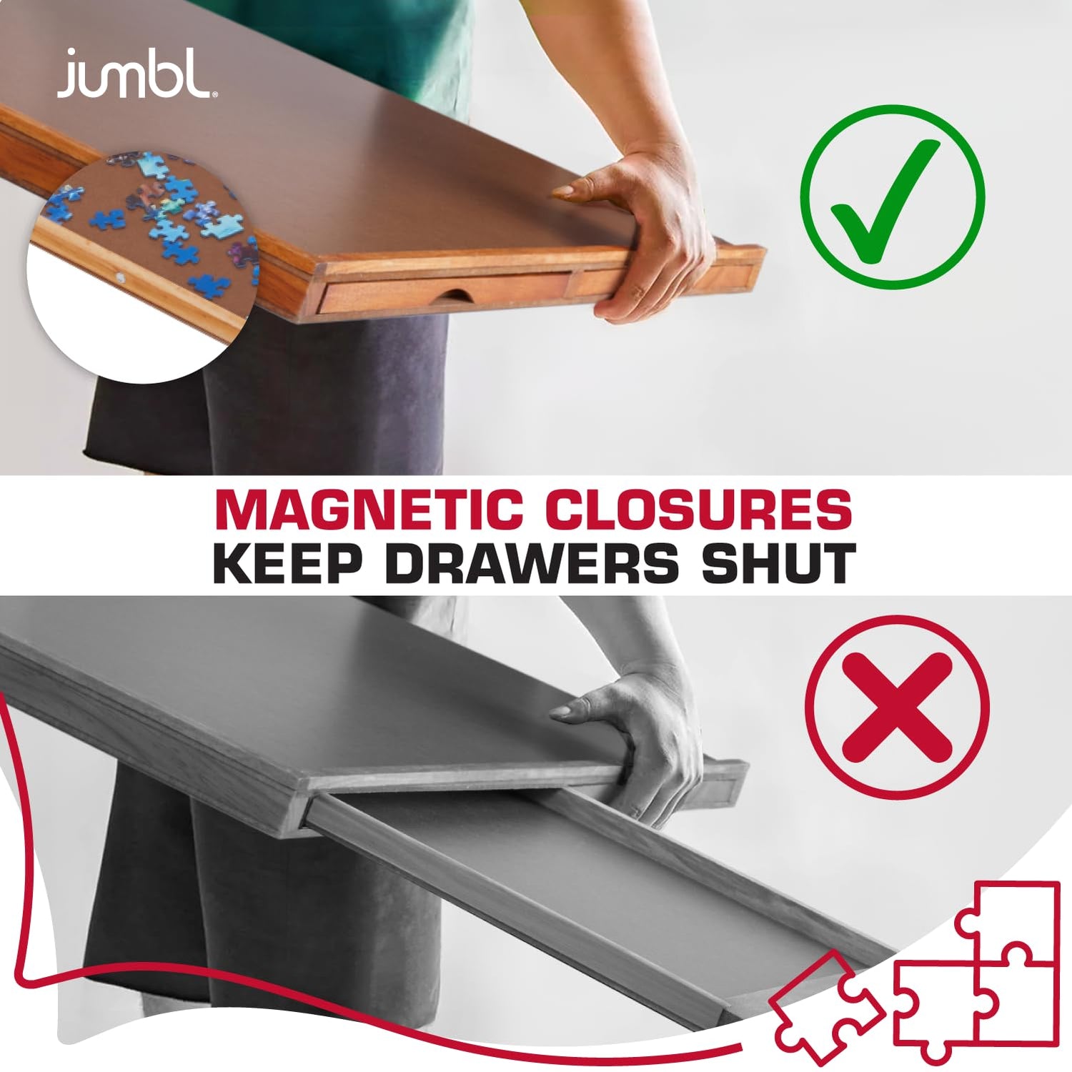 Jumbl 1500-Piece Puzzle Board | 27” x 35” Jigsaw Puzzle Table | 6 Removable Magnetic Sorting Drawers | Smooth Plateau Fiberboard Work Surface & Hardwood Construction | for Games & Puzzles
