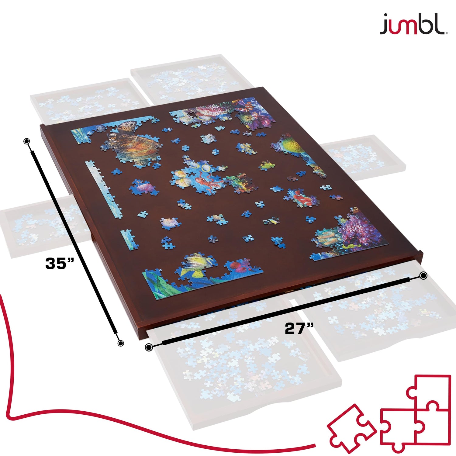 Jumbl 1500-Piece Puzzle Board w/Cover | 27” x 35” Jigsaw Puzzle Table w/ 6 Removable Storage & Sorting Drawers | Smooth Plateau Fiberboard Work Surface & Reinforced Hardwood | for Games & Puzzles