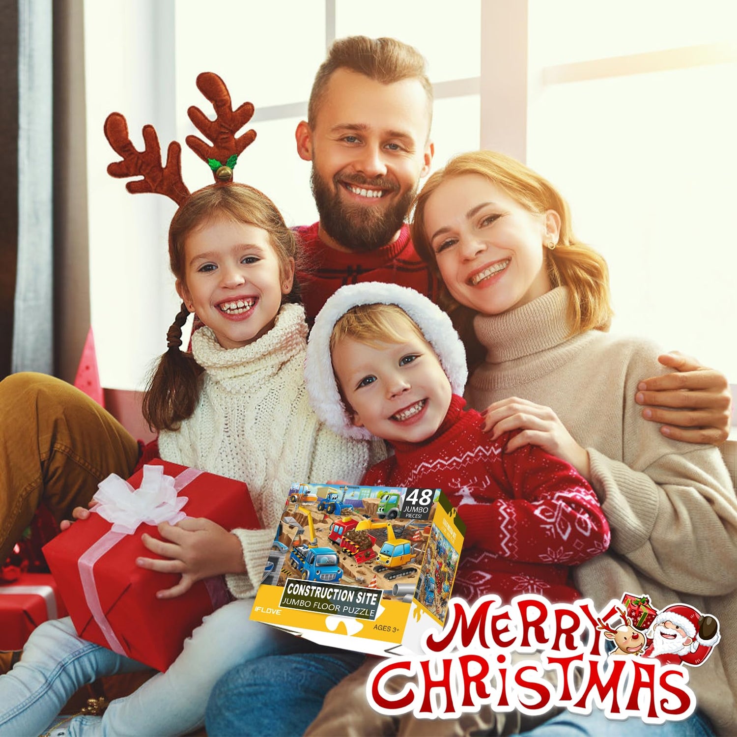 - Large 48-Piece Construction Site Puzzle:This children's puzzle consists of 48 jumbo floor pieces adorned with vibrant and captivating illustrations in a dynamic array of colors. The puzzle showcases the bustling scene of construction vehicles on a work site, creating an immersive and engaging experience. The vivid colors and meticulous attention to detail make it an interactive and educational toy that captures children's interest