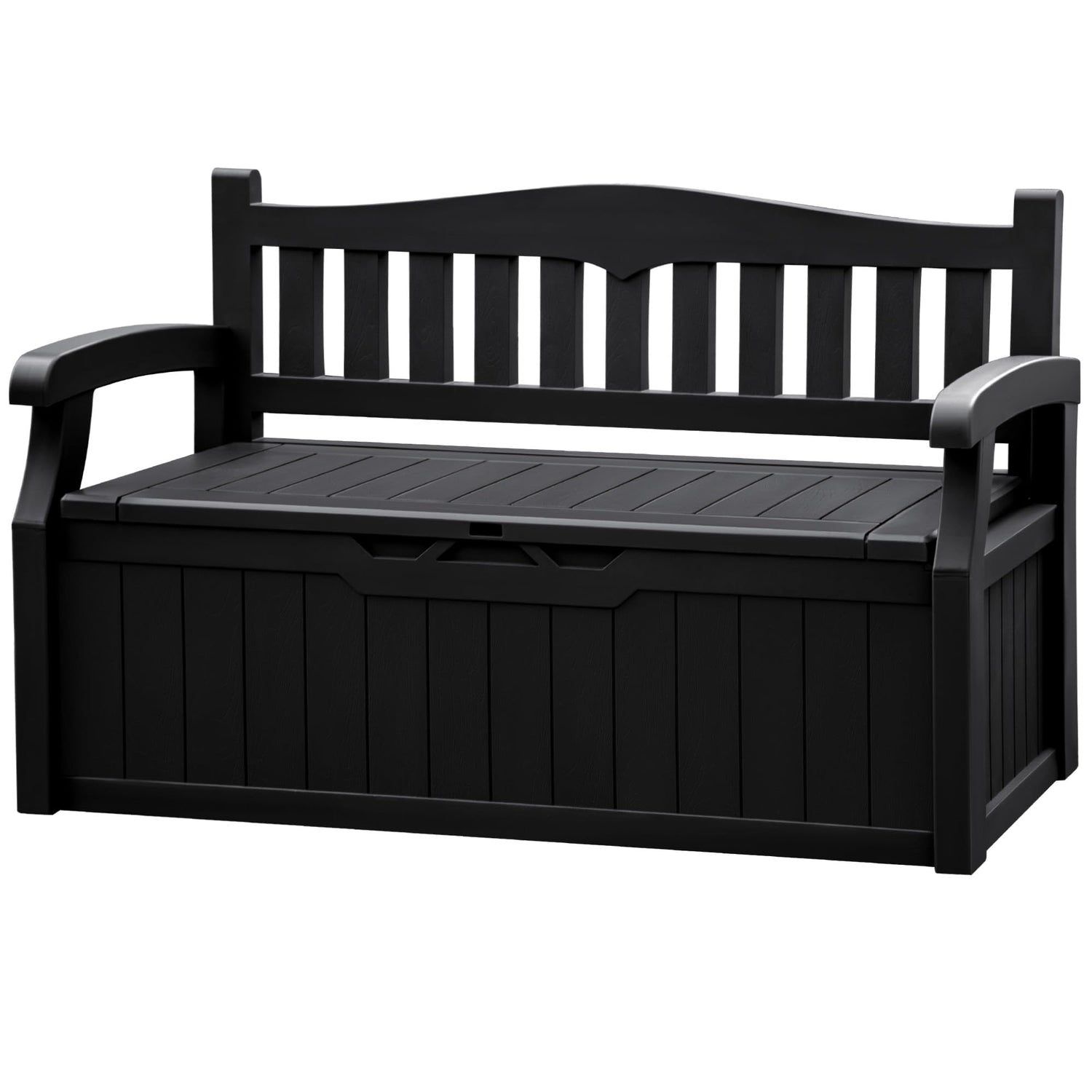 JUMMICO 80 Gallon Resin Outdoor Storage Bench, Large Deck Box with Armrest, Lockable & Waterproof for Garden, Home, Patio, Pools (Black)