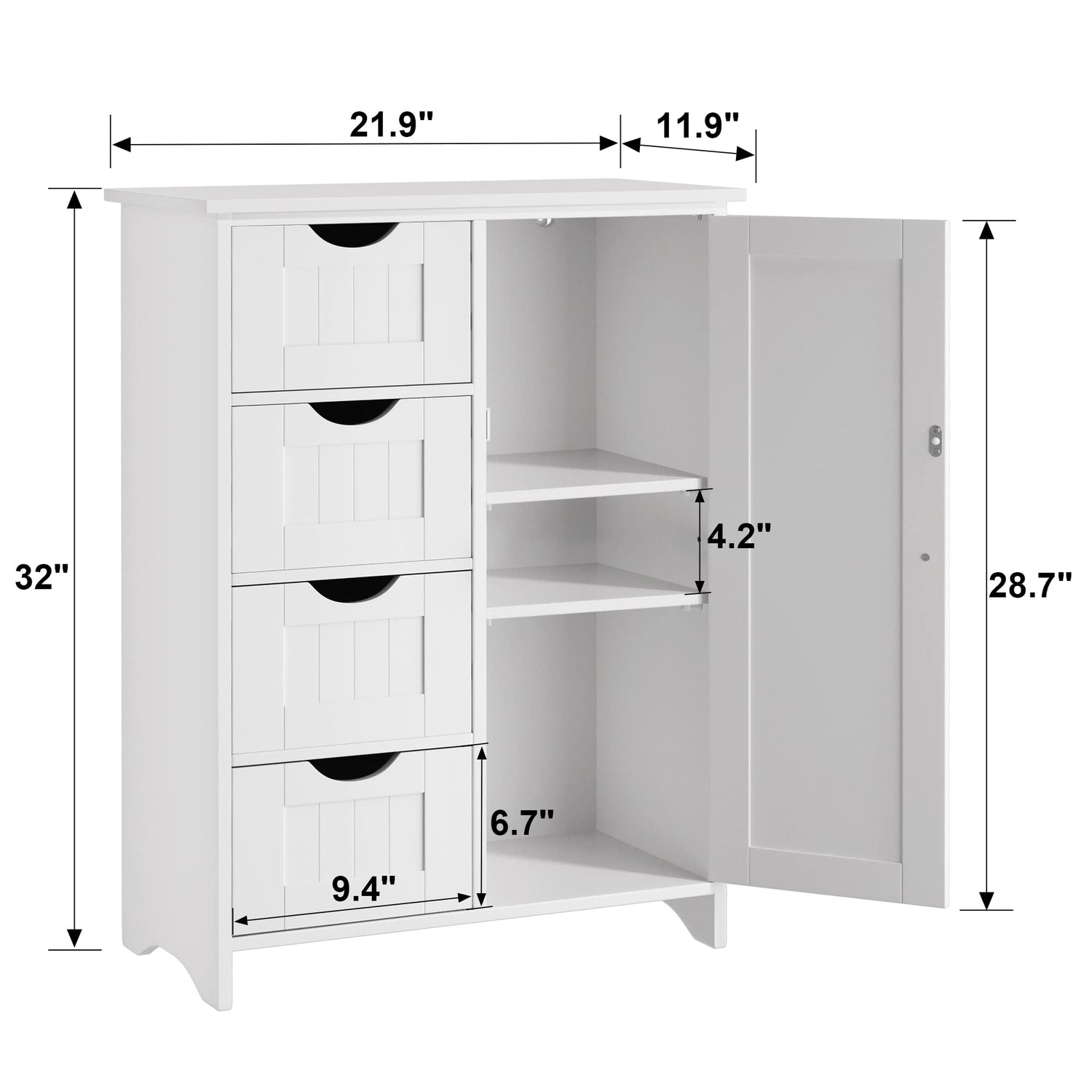 Details: Bathroom Storage Cabinet, Floor Cabinet with 4 Drawers and 1 Adjustable Shelf, Storage Oragnizer for Living Room, Kitchen, Bathroom