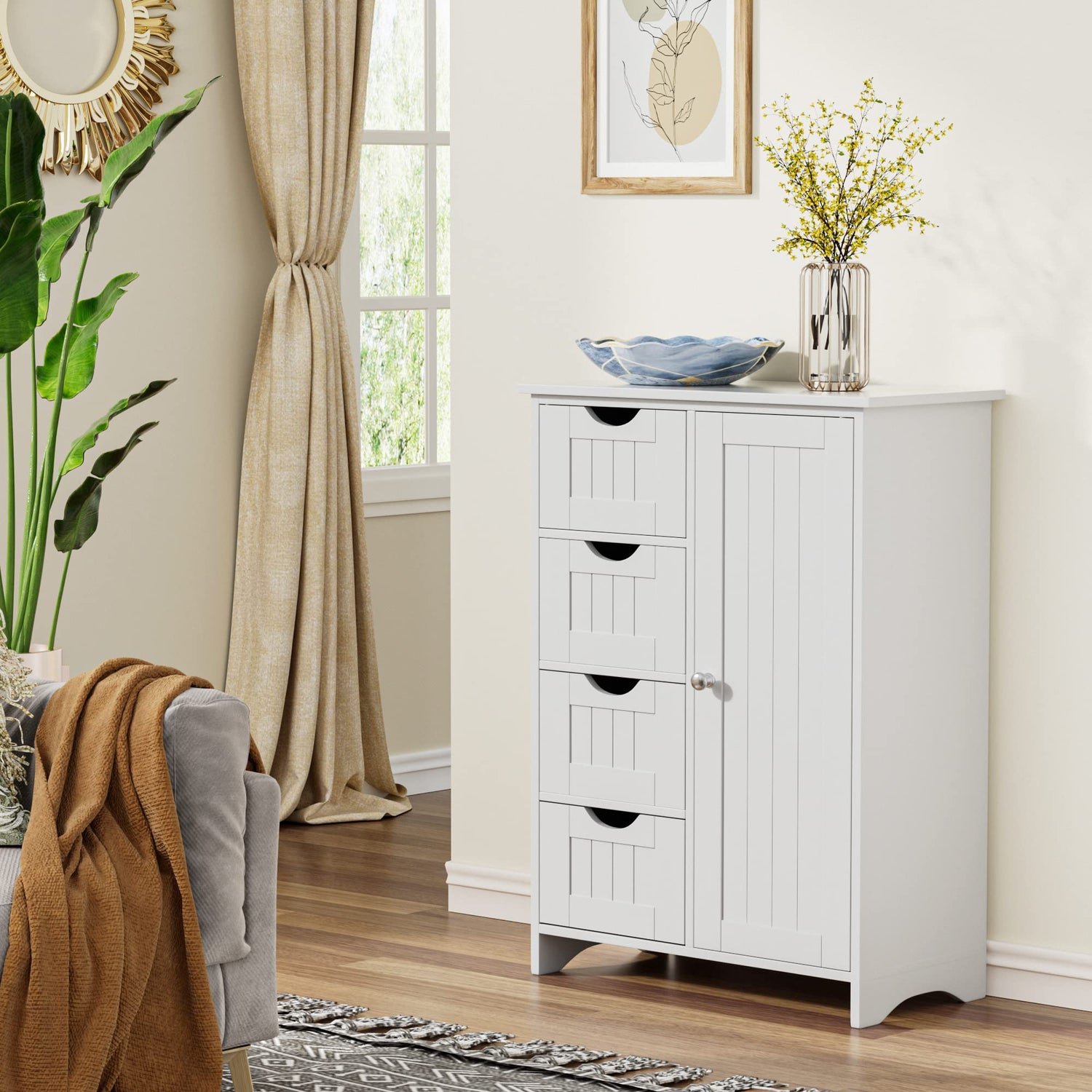 JUMMICO Bathroom Storage Cabinet, Floor Cabinet with 4 Drawers and 1 Adjustable Shelf, Storage Oragnizer for Living Room, Kitchen, Bathroom (White)
