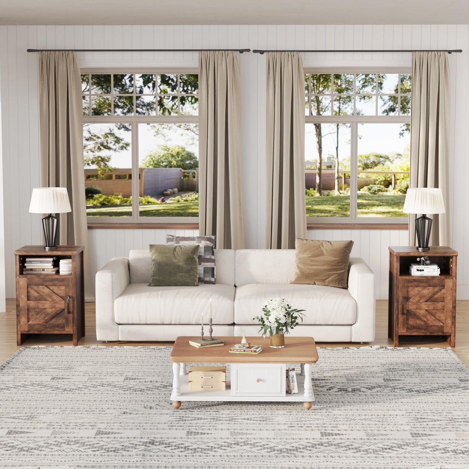 - X Barn Door Design Nightstands: This rustic night stands for bedroom and living room is perfect to collect books, magazines, or electronics. Unique appearance in oak adds a farmhouse style to your bedroom. Inspired by rustic aesthetics, this type of compact end table is simple, practical and elegant, which can perfectly blend with different layout and decor.