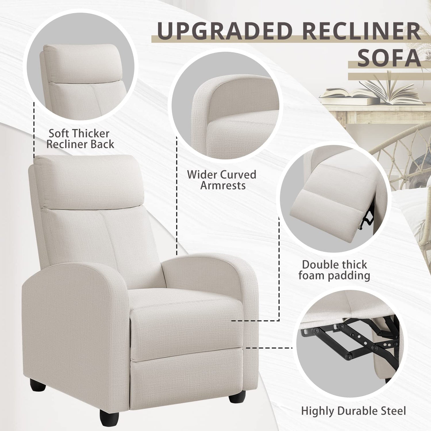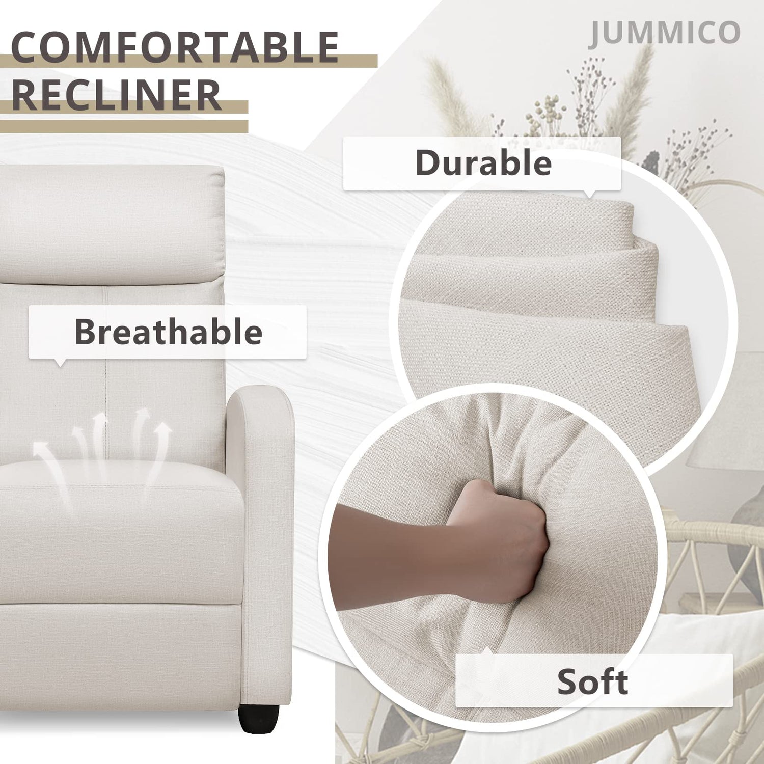 JUMMICO Recliner Chair Adjustable Home Theater Single Recliner Sofa Furniture with Thick Seat Cushion and Backrest Modern Living Room Recliners (Fabric, Beige)