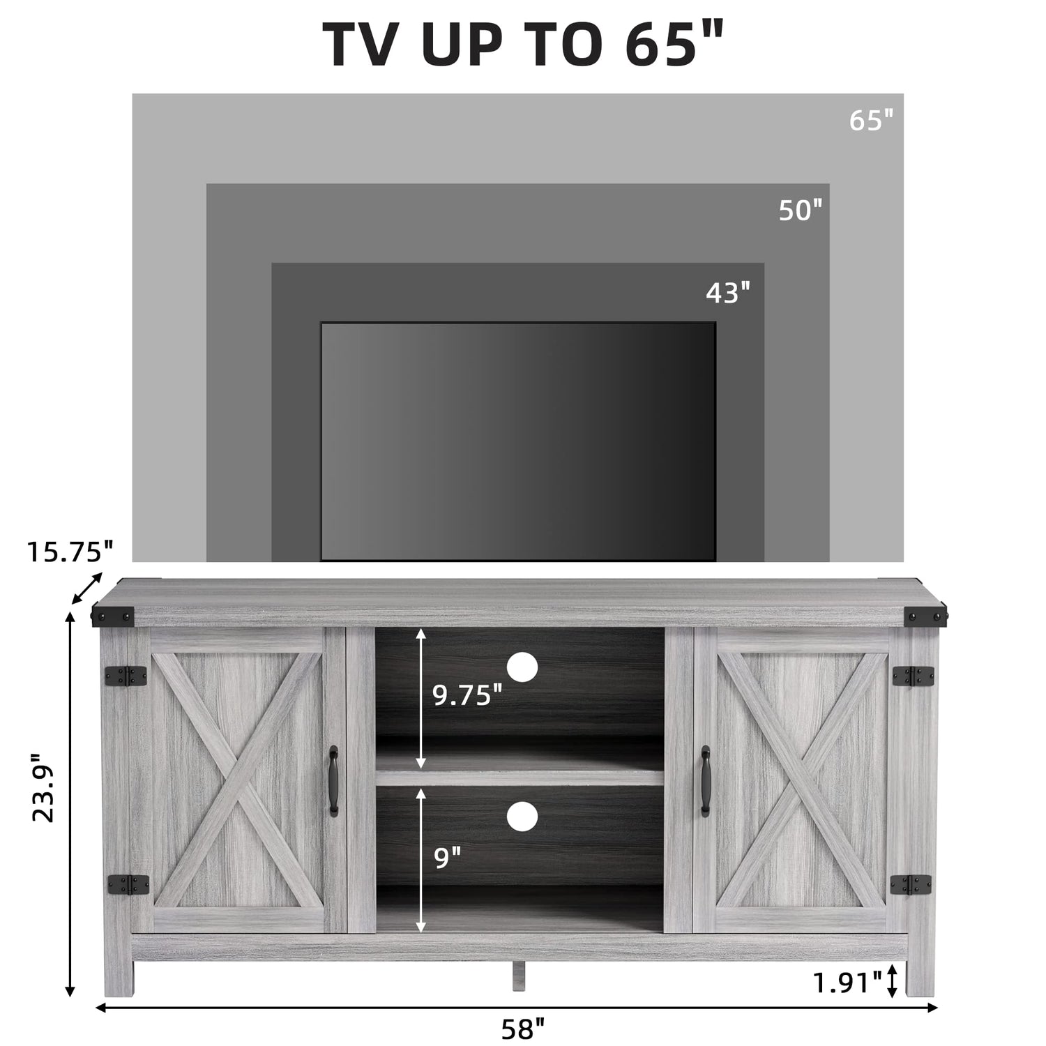 JUMMICO TV Stand for 65 Inch TV Farmhouse Entertainment Center with Double Barn Doors and Storage Cabinets, Console TV Table Media for Living Room, Bedroom (Grey, Without Fireplace)