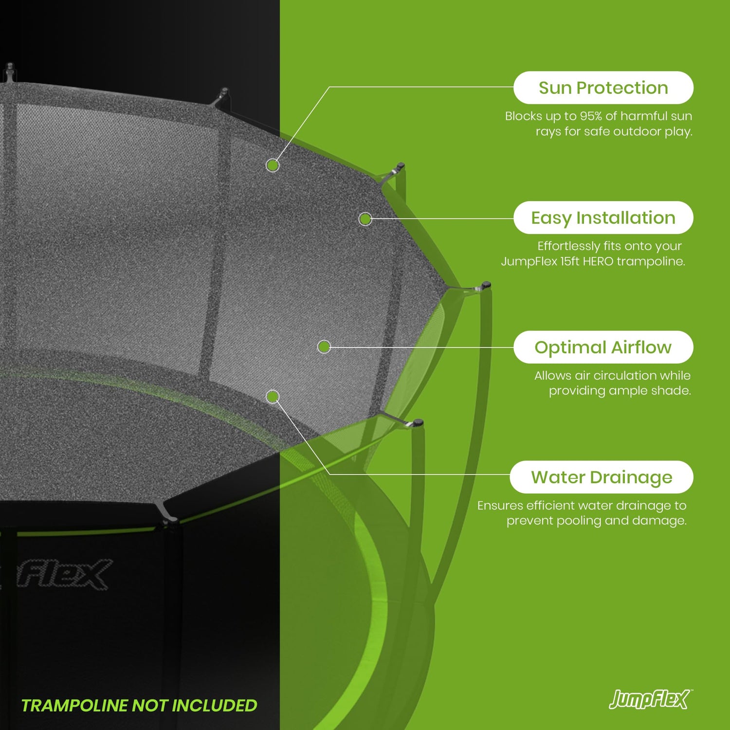 JumpFlex SMARTSHADE Soft Outdoor Trampoline Shade Canopy Cover for Sun Protection, Compatible with Hero 15' Model ONLY, Trampoline NOT Included, Black