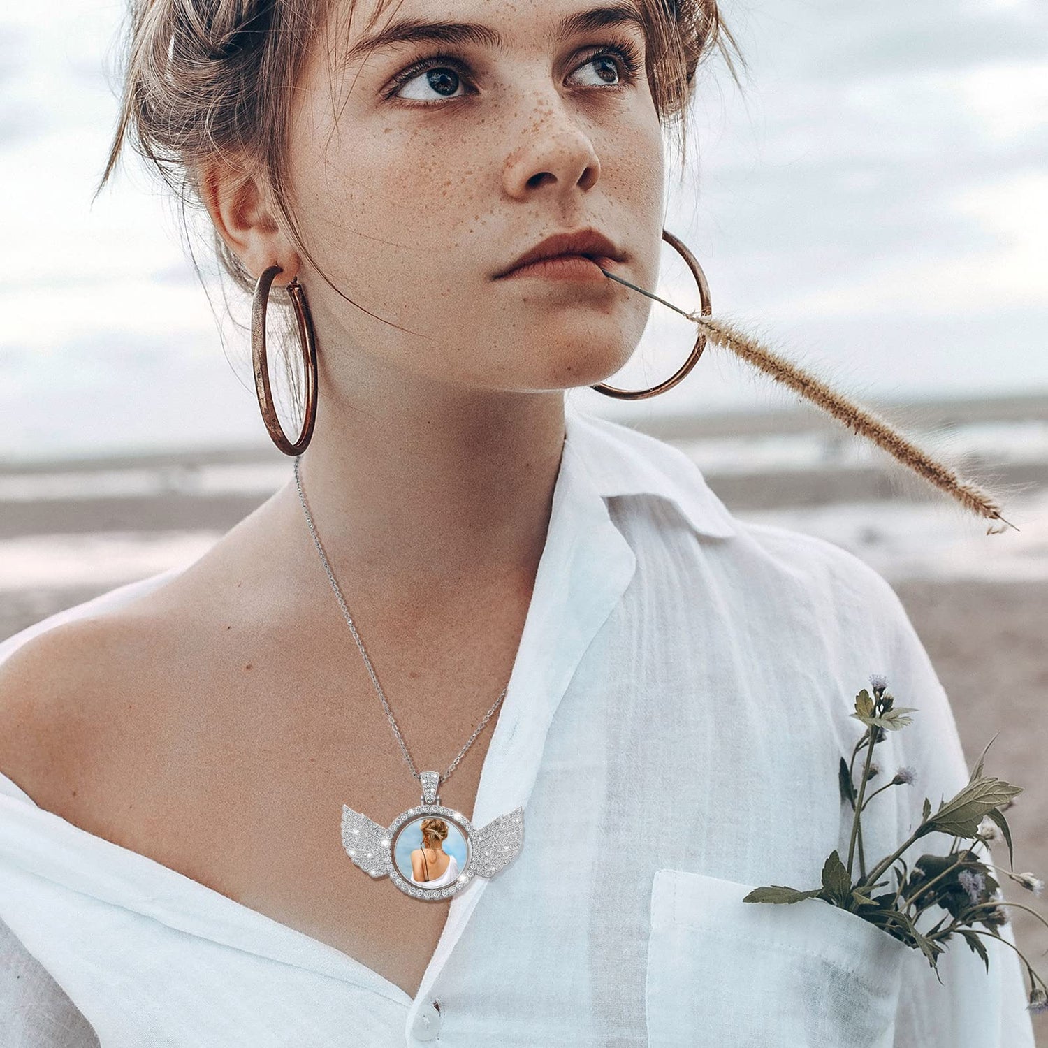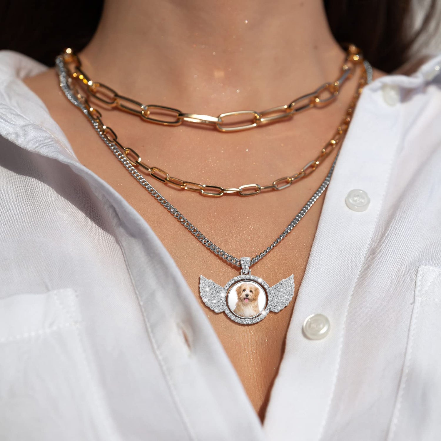 Our rhinestone wing shape circle pendant for jewelry making features a double sided design that allows you to paste different designs or images on both sides for easy use, and you can rotate the tray to display images on different sides