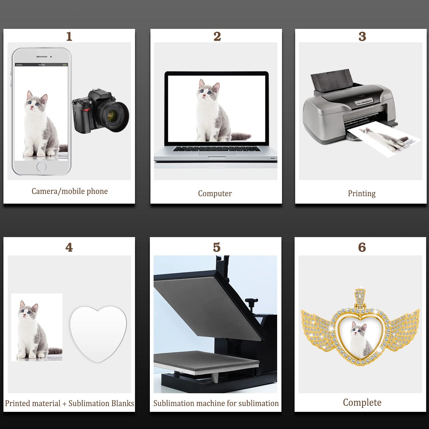 - Complete and Considerate Combination: you will receive 6 pieces of double sided pendant trays for jewelry making, 6 pieces of thick chains in gold, silver and rose gold, 2 pieces for each color, 12 pieces of sublimation blank discs and 12 pieces of heart shape glues, enough to satisfy your daily demands for decoration and DIY crafts making