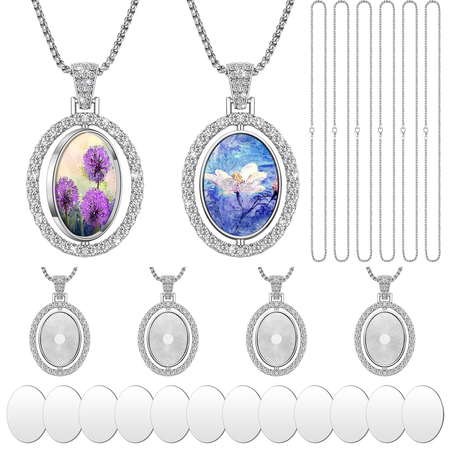 - Nice Rhinestone Bezel Trays Charms Set: the package comes with 6 pieces pendant trays for jewelry making and 6 pieces thick chains, 12 pieces sublimation blank discs, 24 pieces in total, meeting your various DIY and decoration needs in daily life