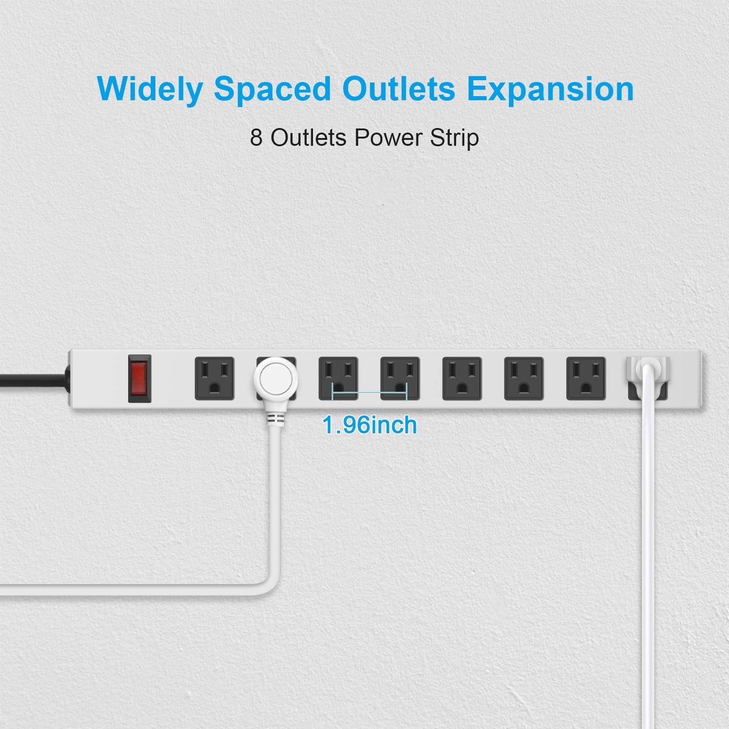 - 8 WIDELY SPACED OUTLETS: Wide spaced designed for big plugs, 8 outlets are separated enough. Support multiple devices to charge together without blocking each other.