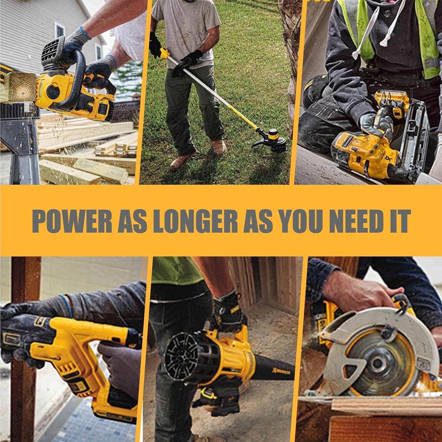 - 【Battery Features 】Battery Voltage: 20V | Battery Capacity: 8000mAh | Wattage: 160Wh | Battery Type: Rechargeable Lithium-ion | Made with high quality Li-ion cells. Compatible with dewalt cordless tools.