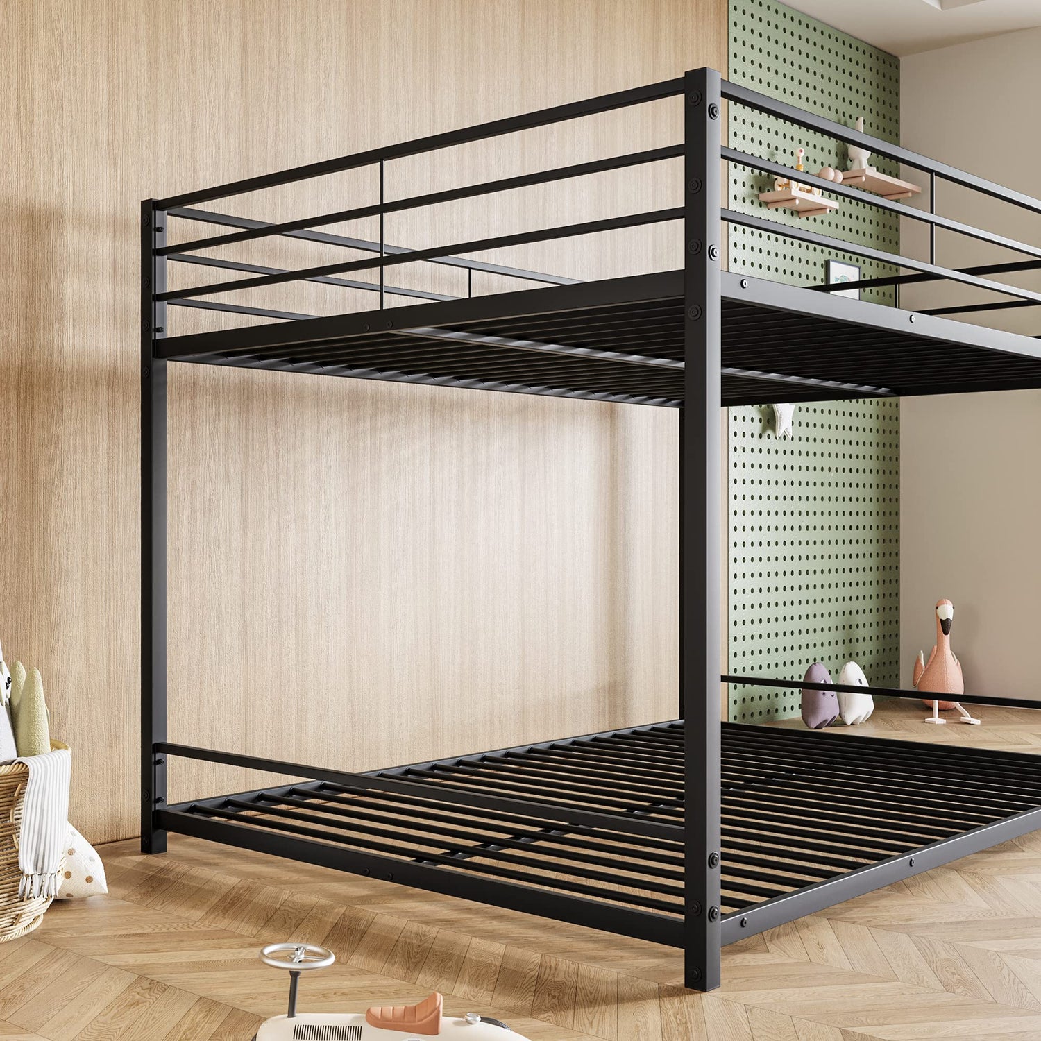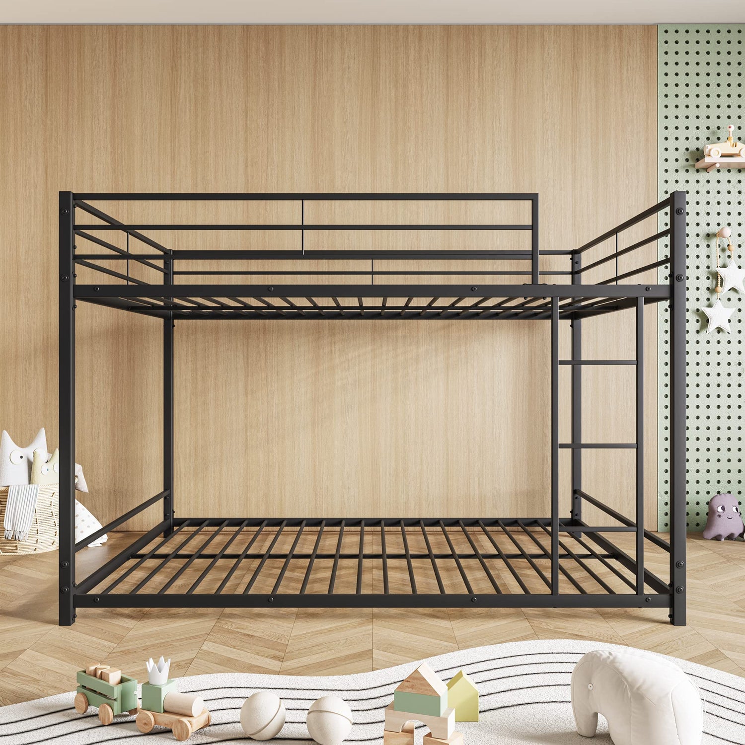 JURMERRY Metal Bunk Bed Full Over Full Beds with Sturdy Guard Rail & Ladder, Space-Saving Design No Box Spring Needed,Black