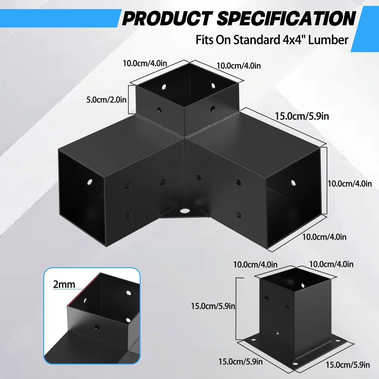 Details: Easily build a durable outdoor structure with our lightweight aluminum 4x4 pergola brackets. Perfect for pergola and gazebo kits, these rust-resistant brackets offer the strength of steel without the weight, making installation quick and easy. Ideal for DIY projects, they ensure your pergola or gazebo stands strong in any weather.