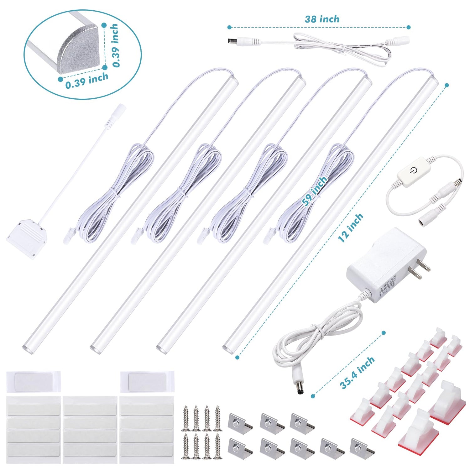 - 💡"Soft Lighting" - This display cabinet lights kit includes 4 LED light bars. Each light is independent and comes with a 59-inch long cord which then plugs into a central hub piece. The color of the lighting is soft and warm, great to light up our special items on a display cabinet or shelf. These cabinet lights are an economical choice compared to buying hardwired LED fixtures.