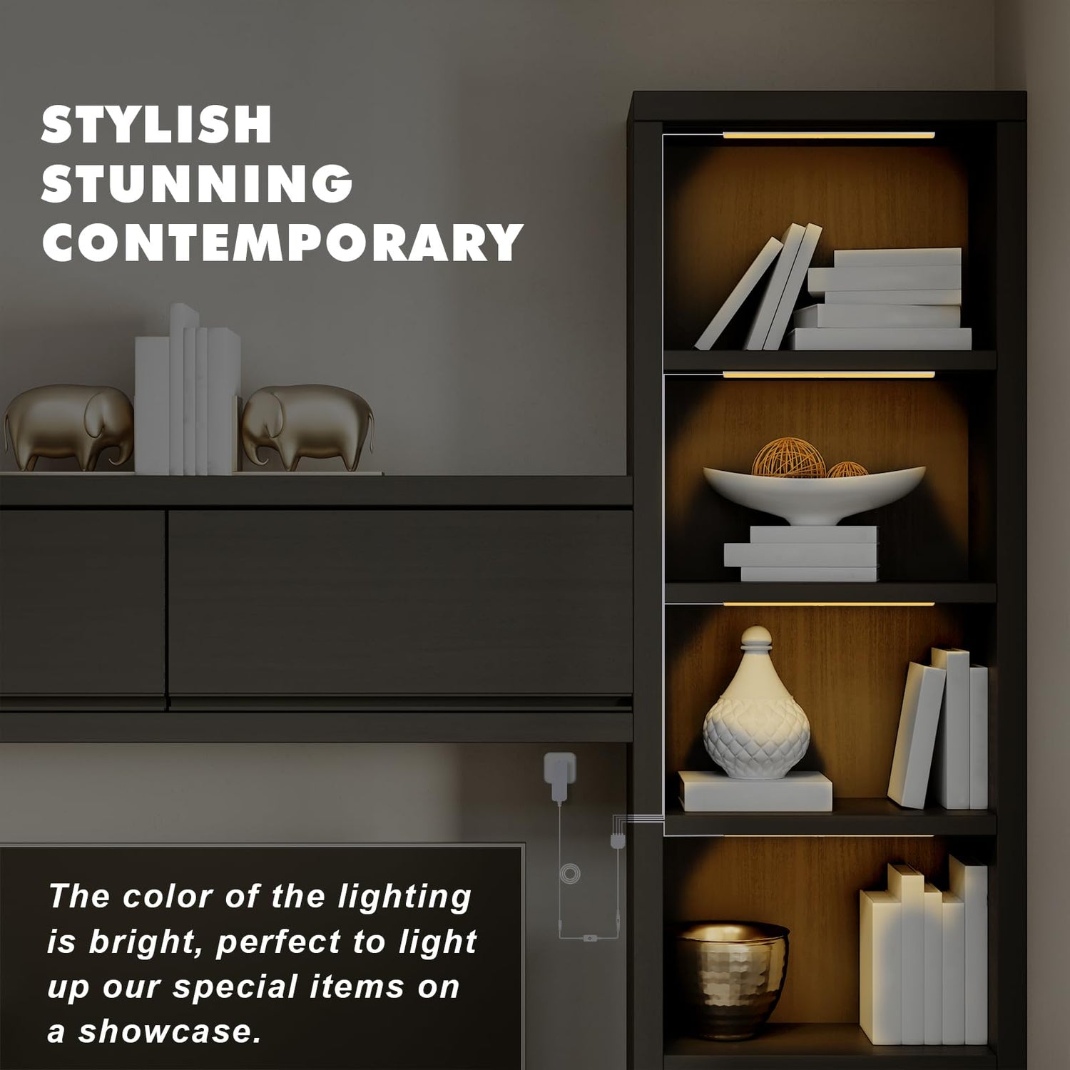 - 💡"Invisible" - These bookcase lighting are thin and easily hide under the lip of the cabinet which adds to the touch of a professional installation and makes them easily invisible. The narrow light bar design provides brilliant illumination at a minimum footprint. Just the good lighting for any small spaces or displays.