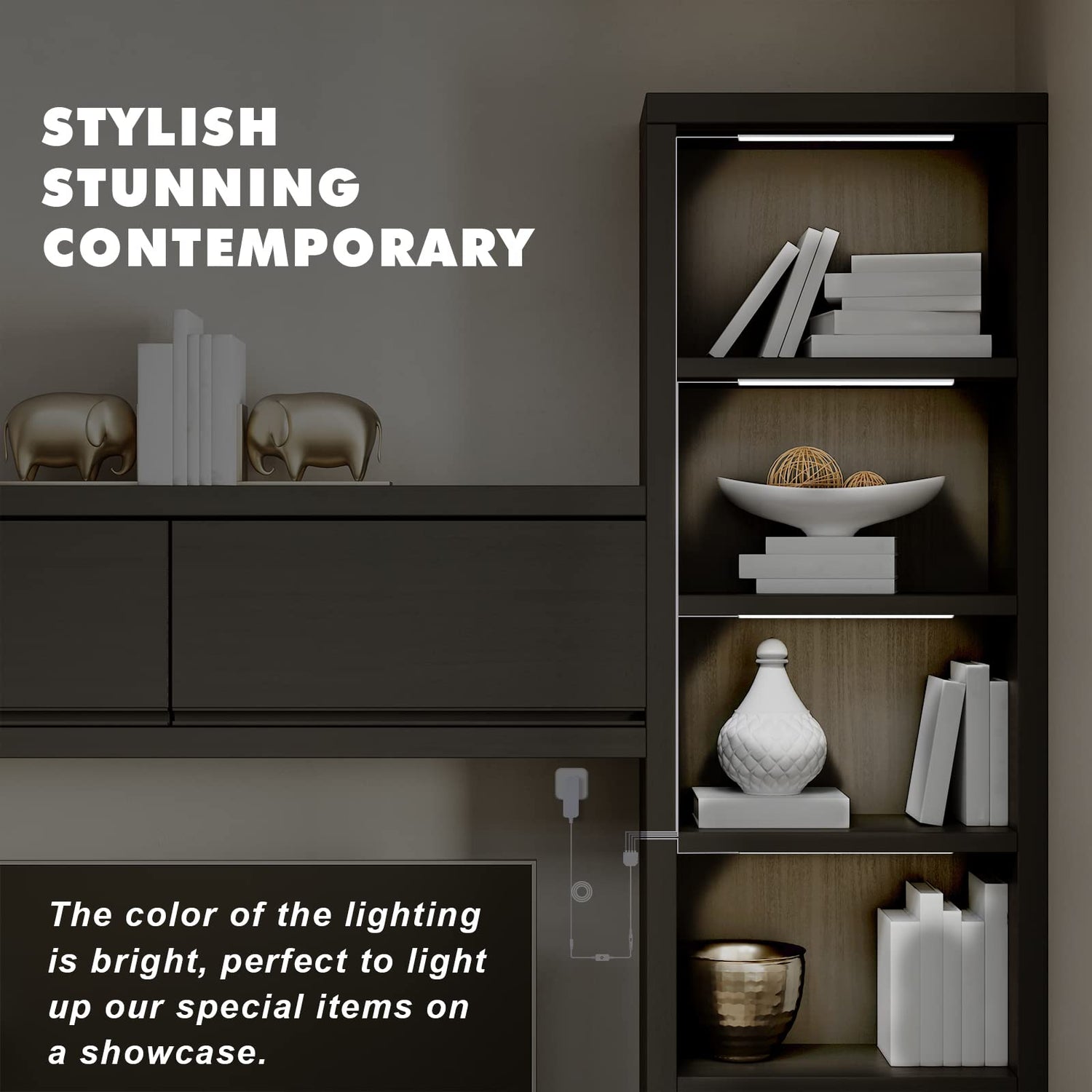 - 💡"Convenient" - These display cabinet lights are much superior to fluorescent lighting and are dim-able. Holding press the switch can adjust the bookshelf lights' brightness arbitrarily to 10%-100%. The lighting can be adjusted to its most attractive setting. Not only that, the shelf lighting will remember the last setting used when you turn it on again.