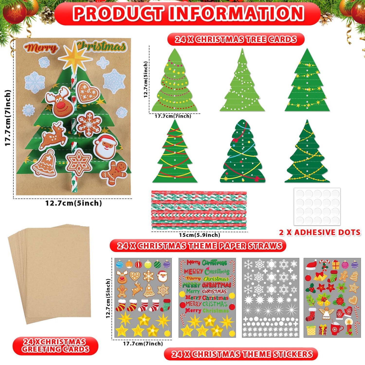 - Package Includes: This Christmas card making craft kit for kids comes with 24pcs Christmas theme paper straws, 24pcs Christmas tree cards in 6 styles, 24pcs Christmas greeting cards, and 24pcs Christmas theme stickers in 4 styles. This set of DIY handmade greeting cards includes everything you need for festive fun, create your own handmade Christmas greeting card or Christmas invitation.