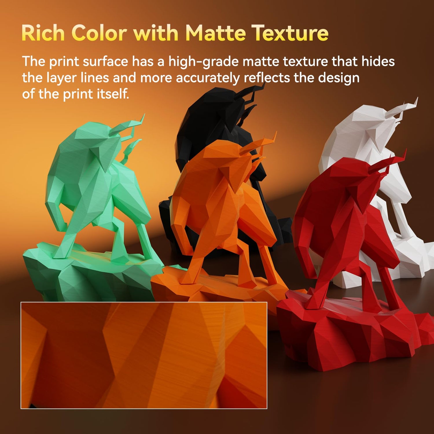 • MATTE TEXTURE - This filament uses a special process to give the spool a matte effect, increasing the product's high-grade texture