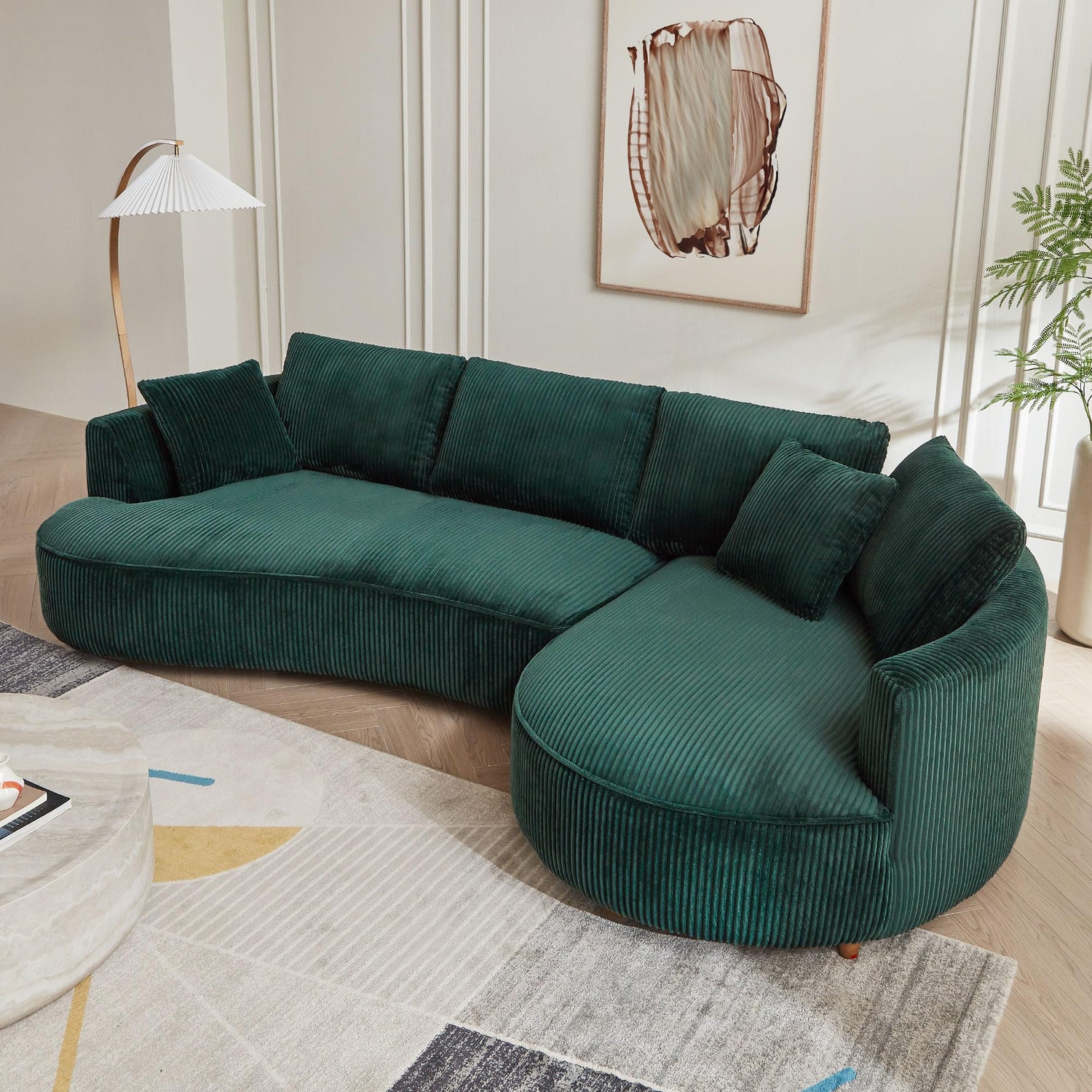JUSTONE 122" Curved Sofa Cloud Couch for Living Room, Modern Corduroy Curved Upholstered Sofa with Pillows, 4-Seat Sofa Couch for Home Apartment Office (Right-Facing,Green)
