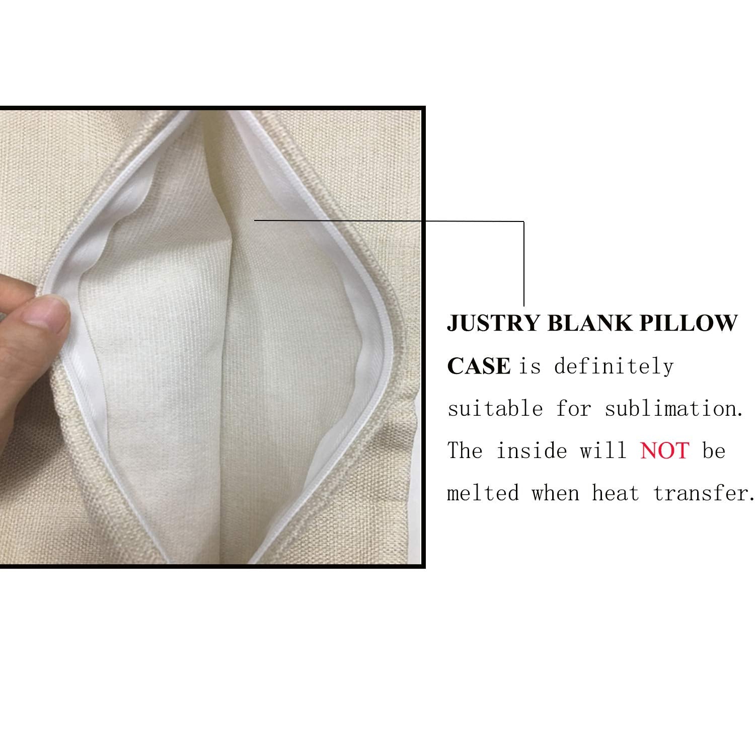 - 【Material】: Made of High quality durable linen blend--16" x 16", with concealed white zipper,comfortable to touch and lay on. JUSTRY blanks pillow case will not melt on the inside when heat transfer.This is the biggest difference from others.It is perfect for heat transfer.Pillow case only,NO INSERT!