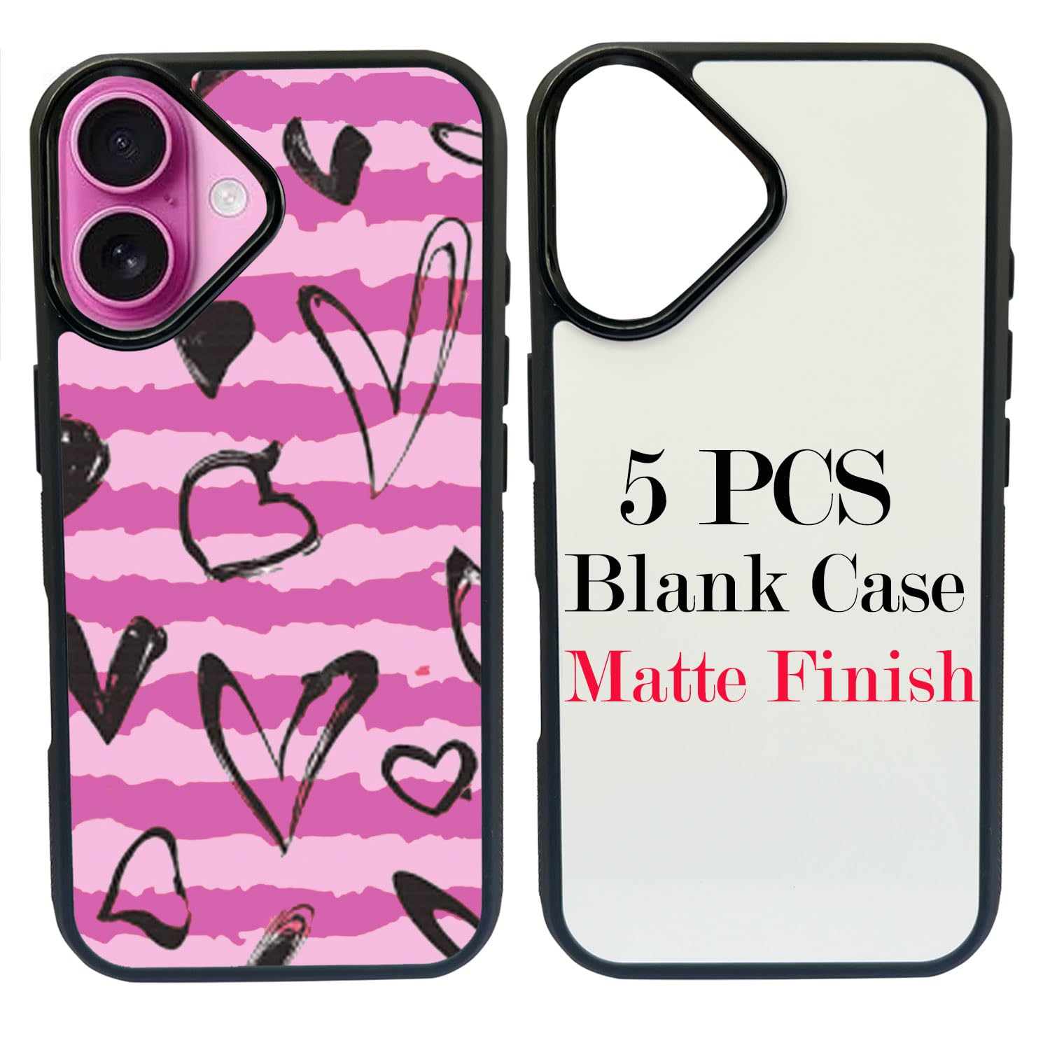 - ✔Includes: 5 sets per pack : Each set consists of Soft Rubber Case + Printable Dye Sub Aluminum Plate (Matte Finish) + Peelable Self-adhesive. Due to the metal insert - wireless charging is NOT compatible with these blank phone cases. This is the sublimation blanks phone case,the image on the case is just for demonstration, they are NOT INCLUDED IN THIS OFFER.