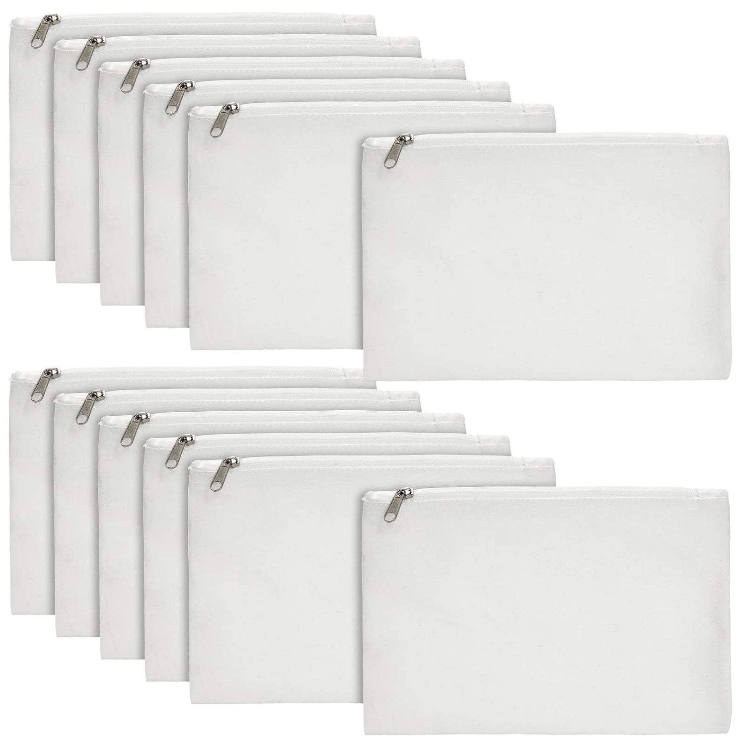Juvale 12-Pack Bulk Blank Canvas Zipper Pouch Set, 8x6 Canvas Pencil Pouch with Zipper for Cosmetic & DIY Crafts, Pens, Markers, Scissors, Makeup Brushes, Lip Gloss, Hair Clips