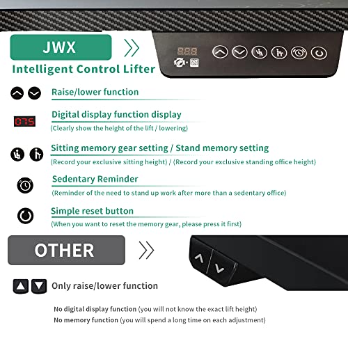 • ① Large Sturdy Intelligent Standing Desk: Versatile advanced intelligent lift system generates enough power to lift the desk smoothly, evenly and quietly,Adjustable height range between 28 3/4" to 46 1/4", suitable for any family member. Built-in sedentary reminder function, will automatically remind standing office after a period of sedentary, always keep an eye on your health. Clearly 2 gear memory gear icon design, no longer worry about forgetting the embarrassment of the height of the gear.