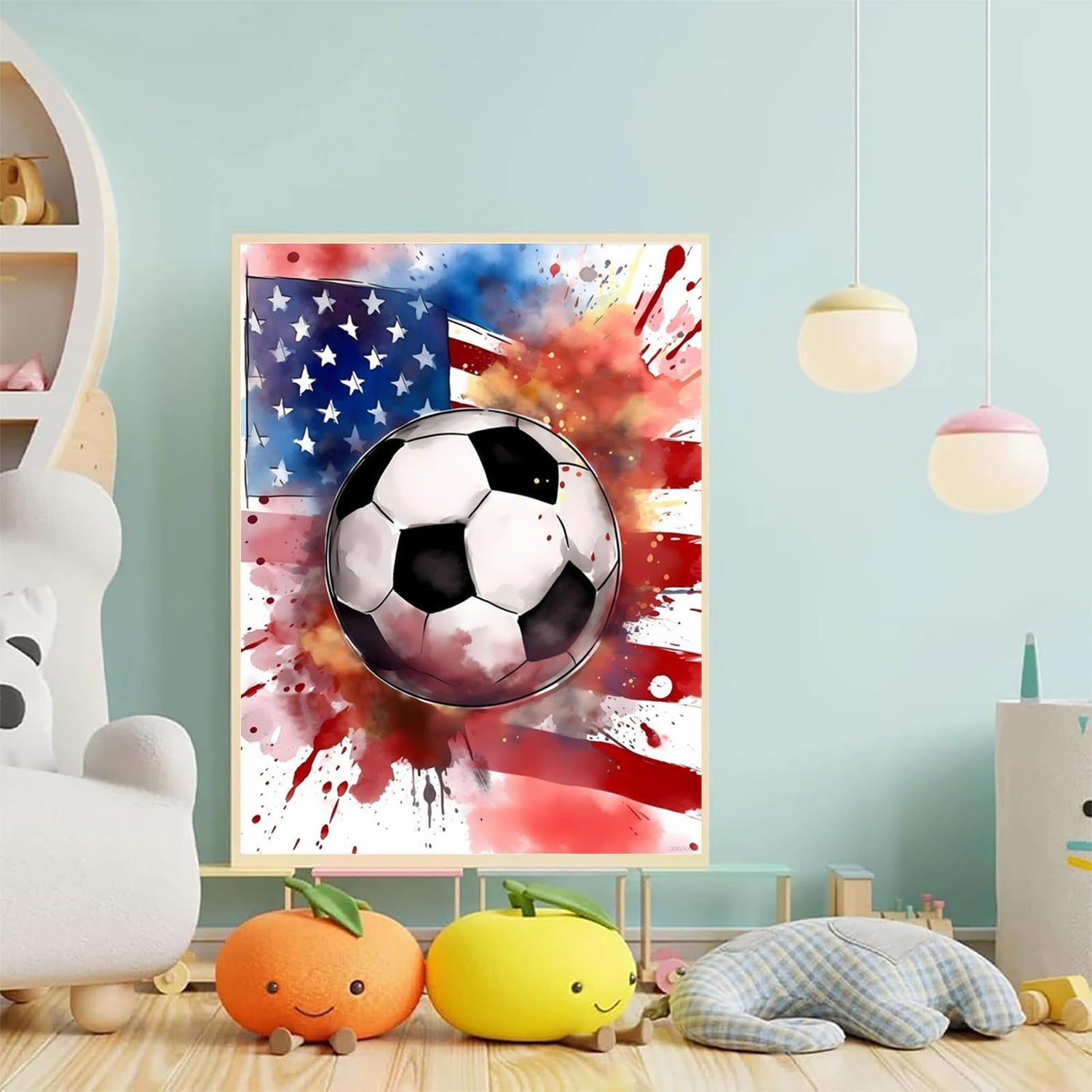 JXAVAXDE Soccer American Flag 5D Diamond Painting Kits, Ball Sports Diamond Art Kits for Adults Paint with Diamonds Gem Art, Full Drill Diamond Paintings Arts and Crafts for Home Decor 12x16 inch