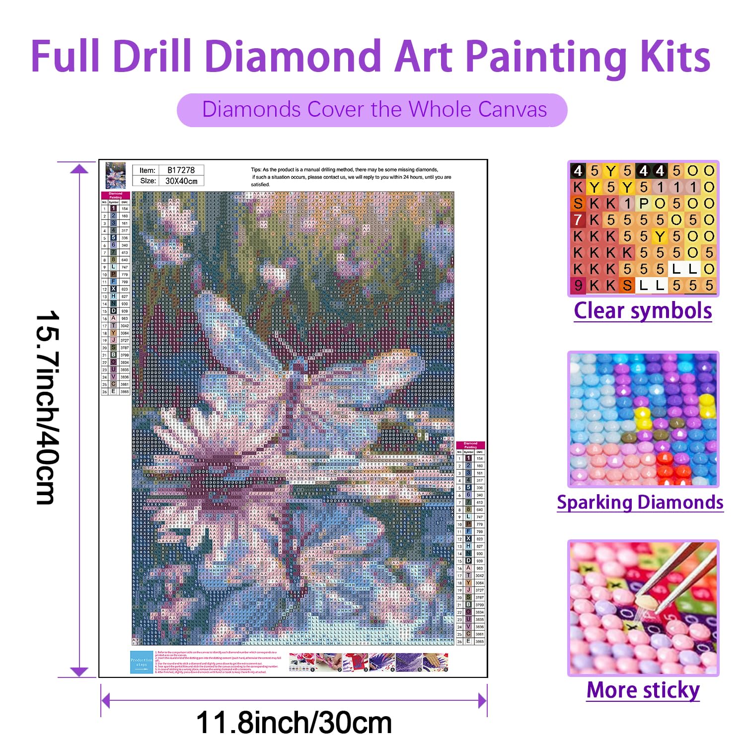 - 【Diamond Art Home Decoration】5D full drill diamond art kits for adults,perfect to decorate your bedroom,living room,dining room,bathroom,washroom,kitchen,study,home,office,hotel,restaurant and bar,excellent decoration effect,gem painting for adults is the most popular decoration,it can also be used as a give it to your friend,such as birthday,party,etc.DIY after the production is completed,you can also give it to your family and friend,I believe they will love this dragonfly diamond art painting kit.
