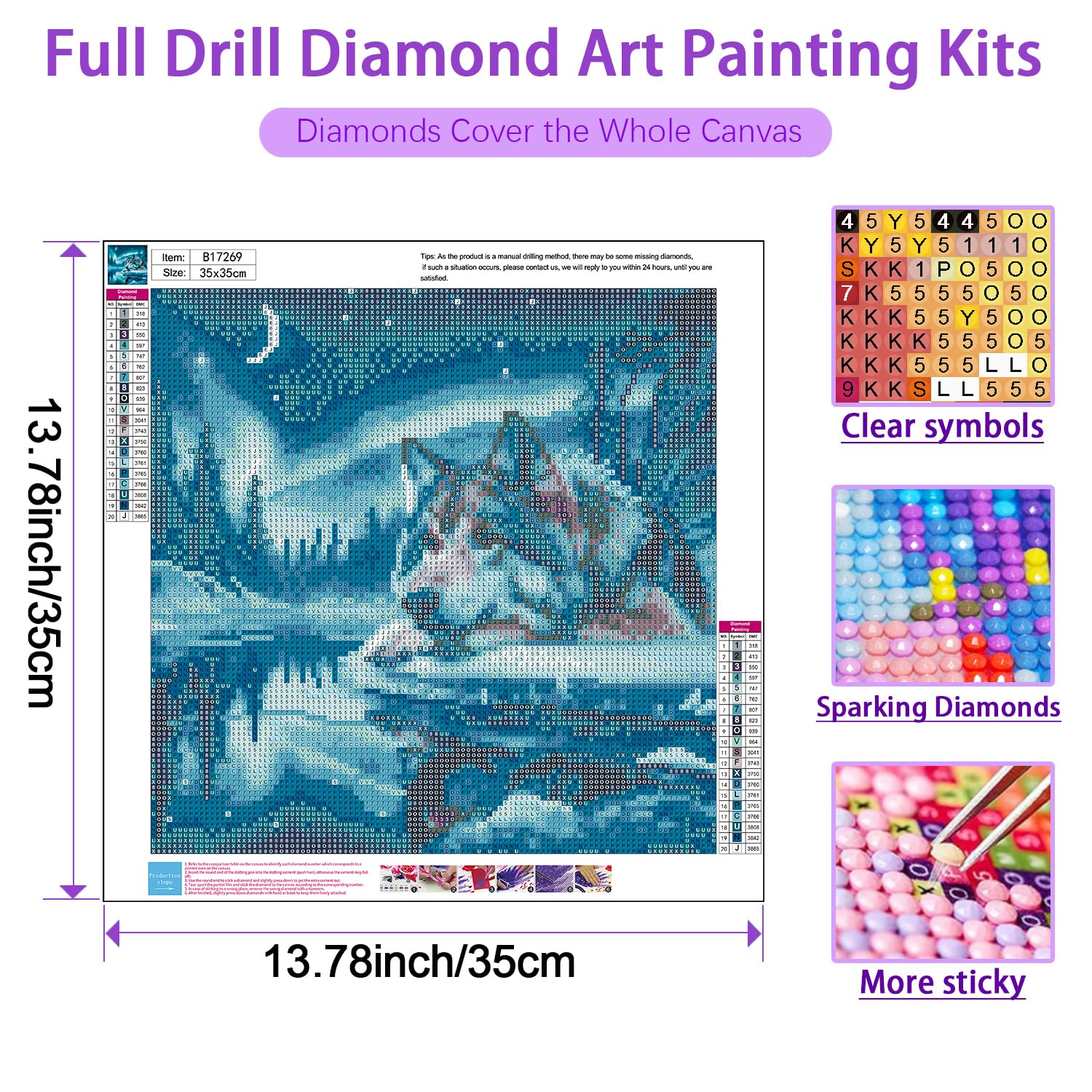 - 【What You Will Get】Each forest wolf diamond painting kit comes with all tools in need.Package Included:1*HD canvas(13.78X13.78 inches),1*diamond pen,1*red gum clay,5D round diamond drills with label packaging,1 tray for holding diamonds,4x plastic sealed bags.(offer extra 20% diamond dots for adults beads),so you don’t need to purchase any additional tools to help you finish the diamond art!