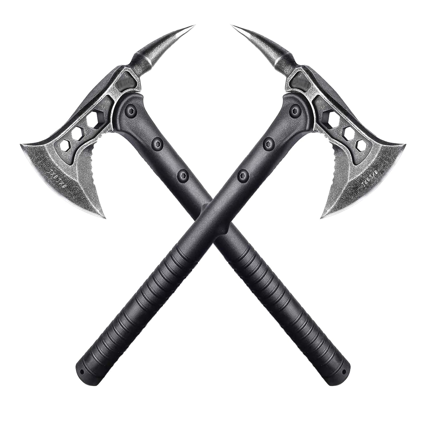 JXE JXO Camping Axe, Throwing Tactical Tomahawk with Spike, Survival Hatchet with Sheath, Nylon Fiber Handle for Outdoor Survival Hiking Camping (2 Pack)