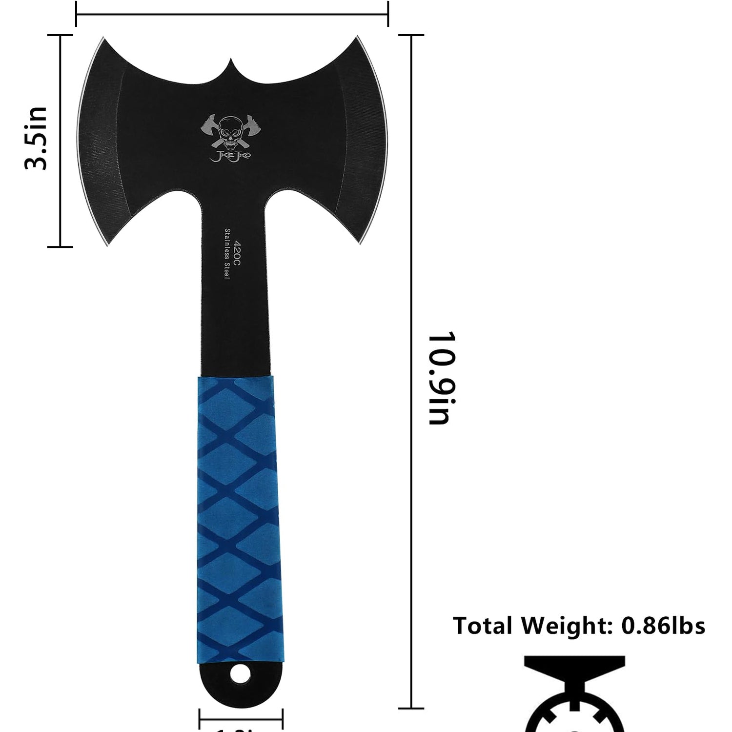 - 【Throwing Axes Dimensions】 10.5" overall length, blade length of 3.5" and a weight of 0.86 lbs